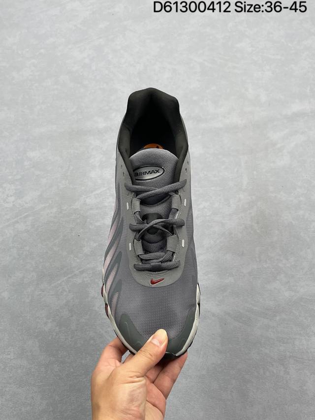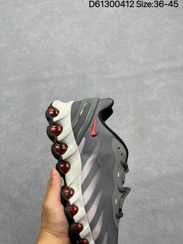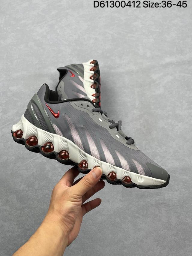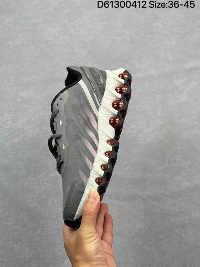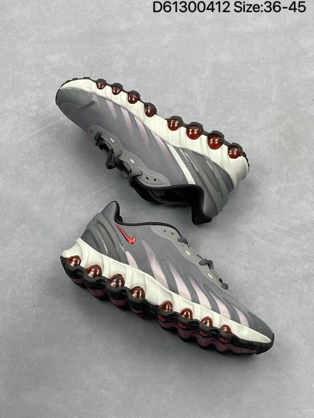 耐克 Nike Air Max Dn8 全掌气垫科技运动跑步鞋Fq7860-005。鞋款采用醒目渐变织物和动态波浪状结构鞋面,搭配黑色中底和外底,以及迷你黑色 Swoosh 标志,采用 8 根压柱 Dynamic Air 气柱,将从鞋跟到脚尖的“Dynamic Air”系统直接配置在橡胶的外底上,尽可能缩短与地面的距离,实现平滑的体重移动,即刻上脚,享受非凡运动体验。环保纤维革饰片组合网眼布鞋面,耐弯折热塑框架支撑鞋身。中底搭载Eva轻量缓震,前掌和后跟配备了 Air Zoom 气垫单元。正确后跟Tpu加