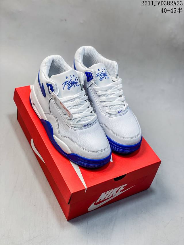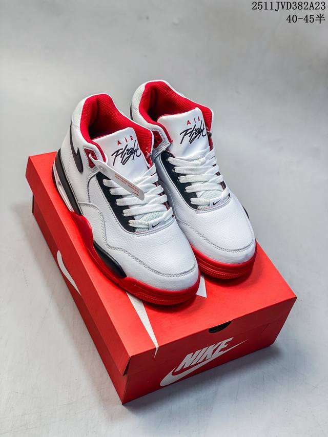 耐克 Nike Nike 耐克男女鞋篮球鞋经典高帮Air Flight Legacy系带缓冲舒适气垫慢跑鞋 DDD 耐克Air Flight是一个很古老而且庞大的系列,历史悠久。早期的Aj其实也可以划入Flight系列,还有我印象比较深的卡特所穿的Shox,Kg所穿的风一,他们都属于Flight系列。 DDD 鞋表面是全Tpu的材料,中高帮的设计,但帮不是很高,后跟加鞋底才13Cm,就比低帮鞋高一点点。这款鞋其实跟Aj4很像,所以很多人也叫它Aj4兄弟款。比较一下,确实有异曲同工的感觉。特别是鞋底中部隆起