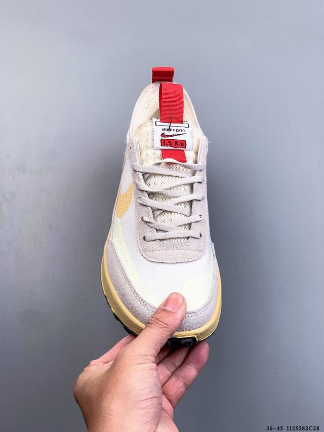 耐克 Tom Sachs X Nikecraft General purpose Shoe 低帮休闲跑鞋 DDD 曾和 Nike 共创下 Mars Yard 神话的 Tom Sachs 近日再释合作,与 Nike 联手带来最新一款 Nikecraft。该鞋履名为 General purpose Shoe 通用鞋 ,灵感来自经典的生活方式运动鞋,款式在美学上倾向于 Killshot 拥有相似的轮廓和镶板。鞋底材质采用网眼布,后部和前部以绒面革覆盖,白色 Swoosh 则更具平面感。在其他细节包括胶底和特殊鞋