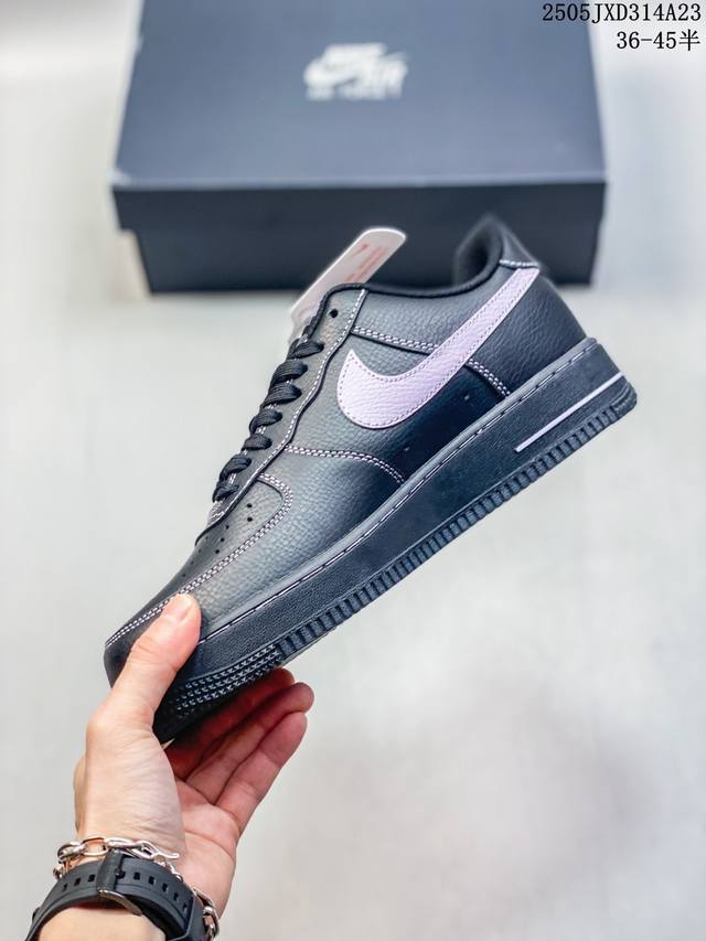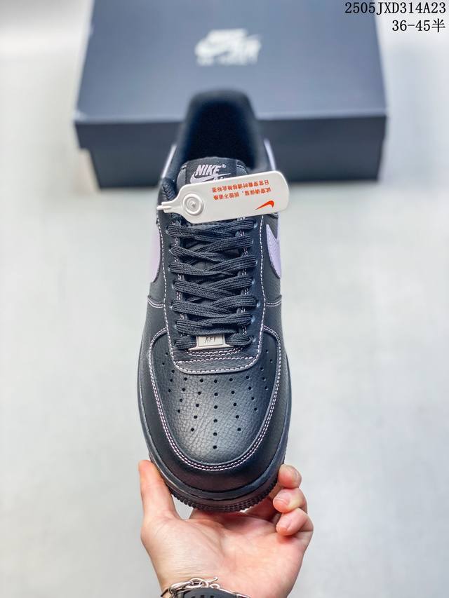 耐克Nike Air Force 1 07 Low 全黑紫勾 空军一号低帮休闲板鞋 Hq2037 001 码数 36 36.5 37.5 38 38.5 39