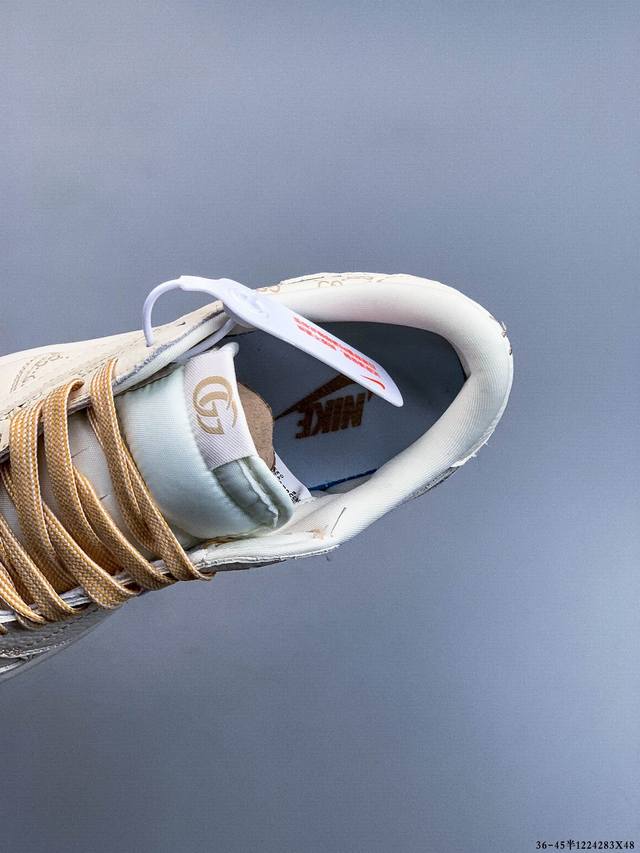 Stussy X Nike Air Force 1 Low 斯图西 X 耐克 空军一号 低帮 联名白黑 休闲运动板鞋 鞋身整体采用白色皮革搭配白色皮革框架覆盖层