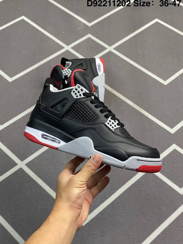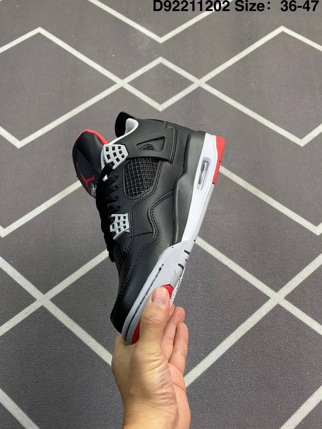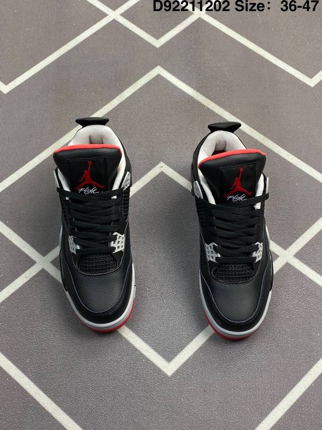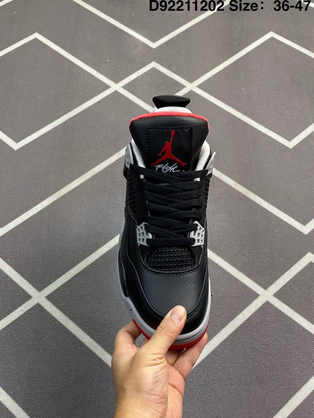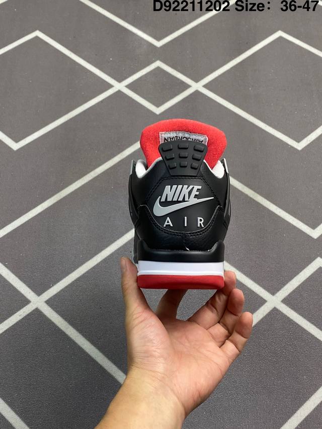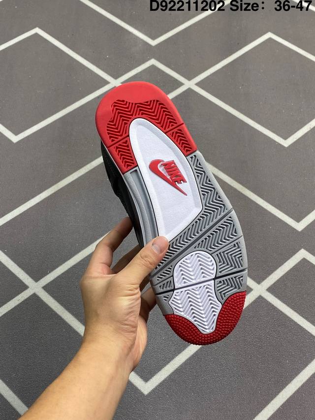 耐克Nike Air Jordan 4 Retro Thunder 雷神 Aj4 乔4 迈克尔 乔丹 Aj4代 低帮复古休闲运动文化篮球鞋。秉承轻量化的速度型篮球鞋设计思想完成设计,降低重量的同时提升舒适度,中底延续前作使用了分离式后掌可视化 Air Sole气垫。鞋带孔和后跟鞋提以籃网为造型灵感,将篮球运动巧妙融入到鞋款的设计之中,使鞋身整体富有流动性、节奏感和优雅气质