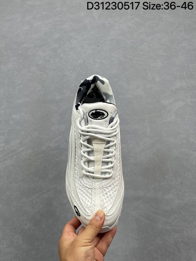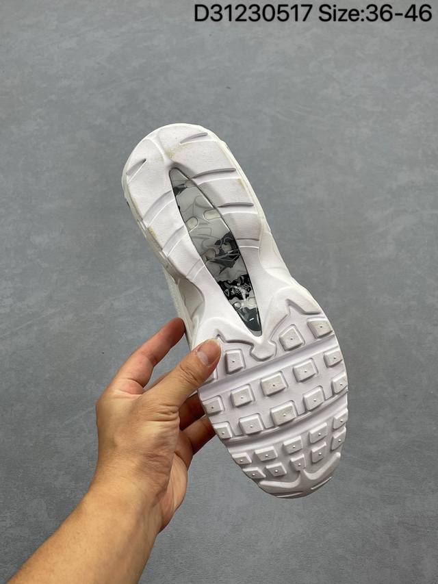 这双鞋采用前脚掌开窗式气垫 这种设计在当时是前所未有的 鞋带孔的设计灵感来自人体肋骨 而鞋底支撑片则模仿了人体脊柱 甚至每个气垫的气压都有详细的标记 这种设计即使在今天看来 依然充满了科技感