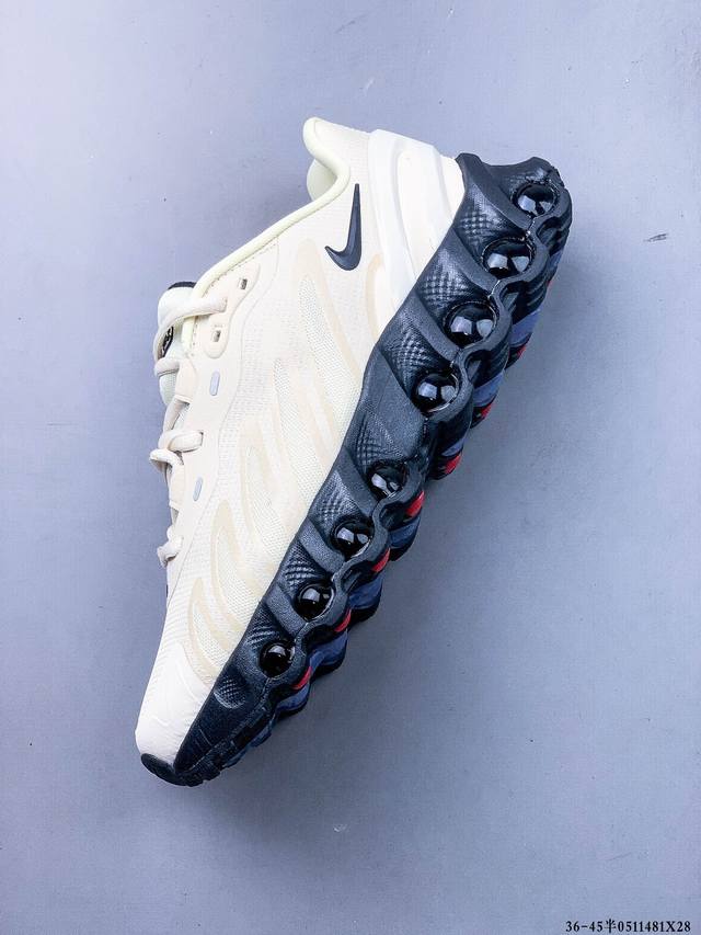 耐克Nike Air Max Dn8 复古减震气垫跑鞋 经典重温 外单专供大厂出品 品质稳定 一百余色 终端操作 鞋款设计灵感源于人体构造 中底设计基于人体的脊柱构造 是整体设计的核心 尼龙孔眼代表了肋骨 而分层式面板和网眼象征着肌肉纤维和肉体组织 Air Max 95采用了两个独立的吹塑成型的Air-Sole单元 并首次在前掌使用可视化气垫设计 Swoosh Logo夜当作一个 点符号放在了鞋子的后帮位置 20年的发展让 Air Max 95有了不同的故事 20年后再度面向世人的时候 焕然一新的面貌 让