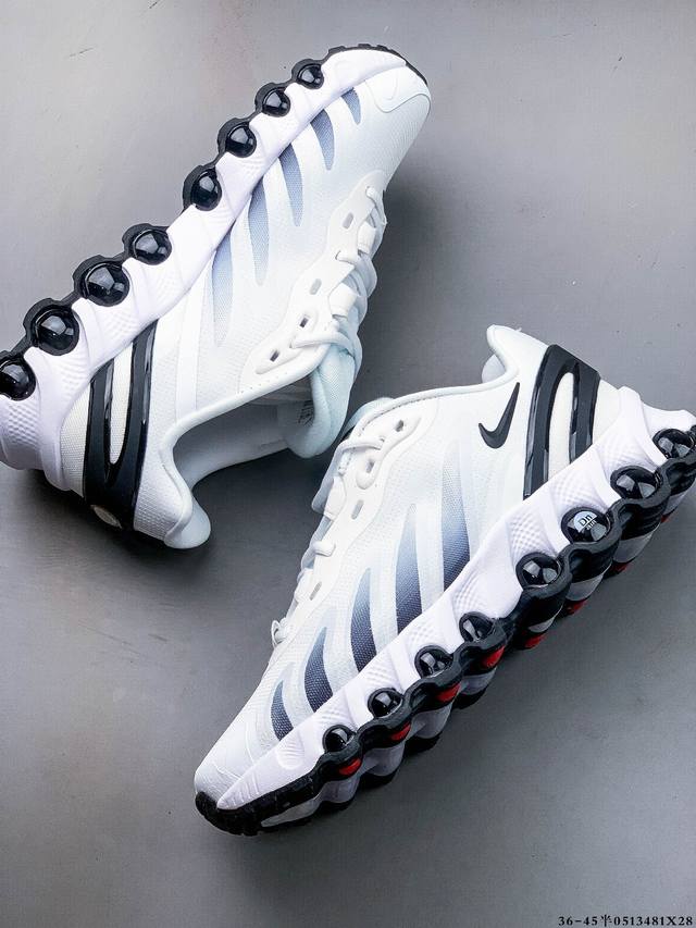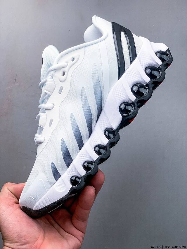 耐克Nike Air Max Dn8 复古减震气垫跑鞋 经典重温 外单专供大厂出品 品质稳定 一百余色 终端操作 鞋款设计灵感源于人体构造 中底设计基于人体的脊柱构造 是整体设计的核心 尼龙孔眼代表了肋骨 而分层式面板和网眼象征着肌肉纤维和肉体组织 Air Max 95采用了两个独立的吹塑成型的Air-Sole单元 并首次在前掌使用可视化气垫设计 Swoosh Logo夜当作一个 点符号放在了鞋子的后帮位置 20年的发展让 Air Max 95有了不同的故事 20年后再度面向世人的时候 焕然一新的面貌 让