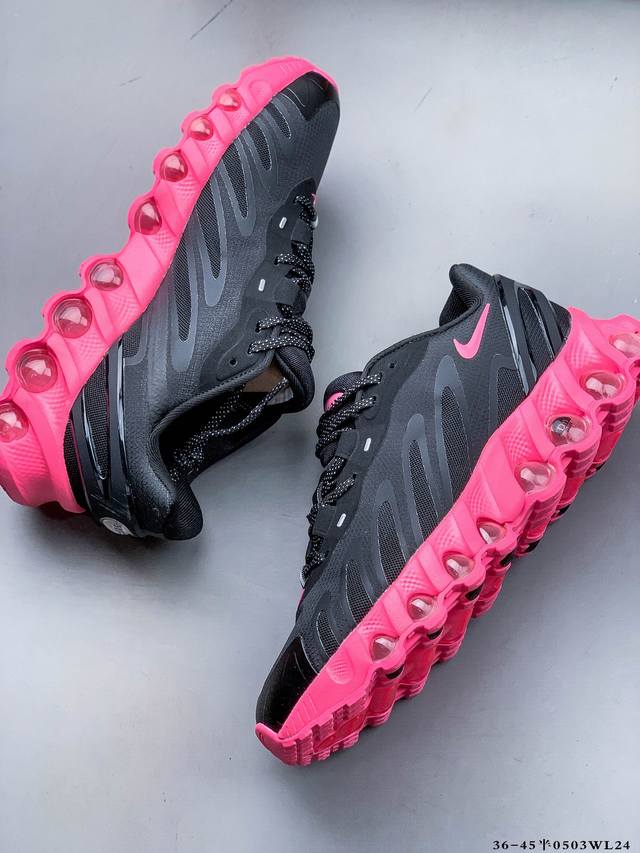 耐克Nike Air Max Dn8 复古减震气垫跑鞋 经典重温 外单专供大厂出品 品质稳定 一百余色 终端操作 鞋款设计灵感源于人体构造 中底设计基于人体的脊柱构造 是整体设计的核心 尼龙孔眼代表了肋骨 而分层式面板和网眼象征着肌肉纤维和肉体组织 Air Max 95采用了两个独立的吹塑成型的Air-Sole单元 并首次在前掌使用可视化气垫设计 Swoosh Logo夜当作一个 点符号放在了鞋子的后帮位置 20年的发展让 Air Max 95有了不同的故事 20年后再度面向世人的时候 焕然一新的面貌 让