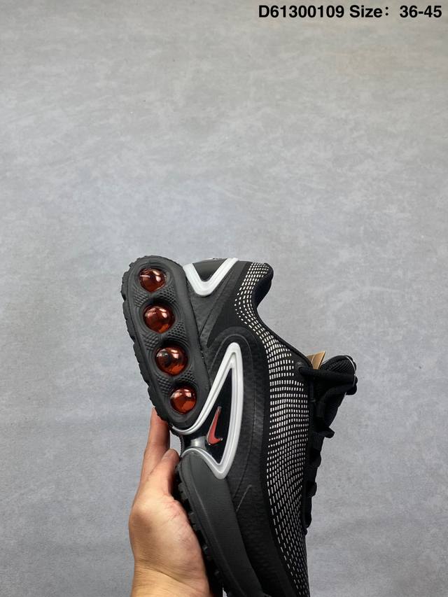 FFF 耐克Nike Air Max Fire 后掌气垫 缓震运动跑鞋 Dn8的核心亮点在于其八腔气垫结构 根据不同部位设定的气压值专为行走设计提供卓越的舒适感 鞋面的设计让人联想到上世纪90年代末至 0年代初的多款Airmax 中底上系列圆形孔洞引发了热议 不少人将其与竞争品牌的缓震技术进行比较例如K-Swiss 2010年代初推出的Tubes技 及以多孔鞋底闻名的品牌 On DDD 尺码 36 36.5 37.5 38 38.5 39 40 40.5 41 42 42.5 43 44 45 DDD 货