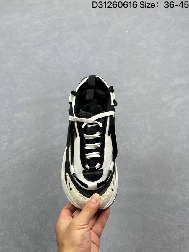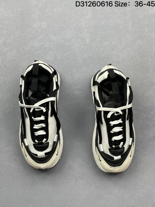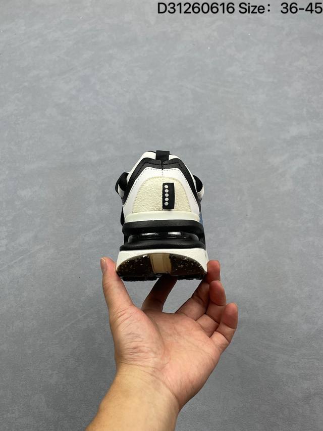 耐克Nike Air Max Furyosa 缤纷美学延续了 Air Max 家族科技感十足的设计理念,依旧使用可视气垫组成减震部分,进一步强调了其未来科幻的概念。整个鞋身采用舒适柔软的多种面料拼接而成,柔软质感的鞋口结合加衬鞋舌,为双足带来全天候的舒适支撑体验。