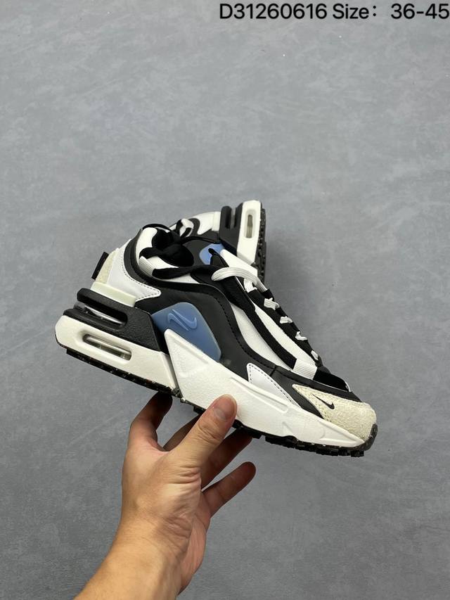耐克Nike Air Max Furyosa 缤纷美学延续了 Air Max 家族科技感十足的设计理念,依旧使用可视气垫组成减震部分,进一步强调了其未来科幻的概