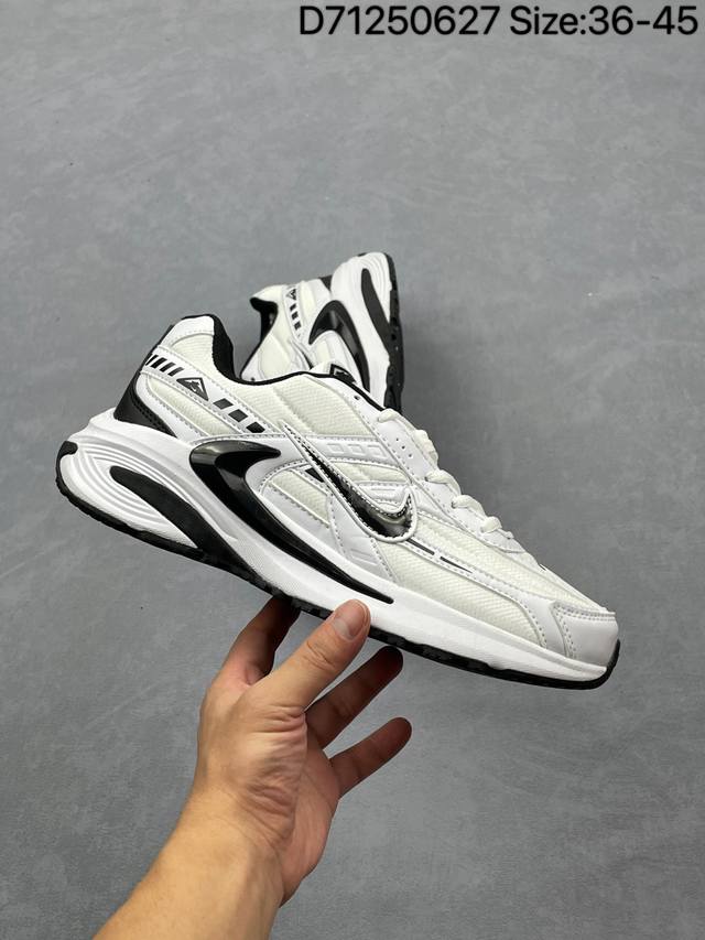 耐克Nike Vrun跑步鞋复古风潮 网面透气运动鞋 灰银紧致的鞋面材质提供良好的包裹性鞋侧 Swoosh以及鞋头部分搭配增添不少亮点的镀铬细节鞋垫上印有Bill Bowerman头像 将细节拉满中底饰有独特的做旧效果 最后搭载黑色外底凸显整双鞋的复古气质