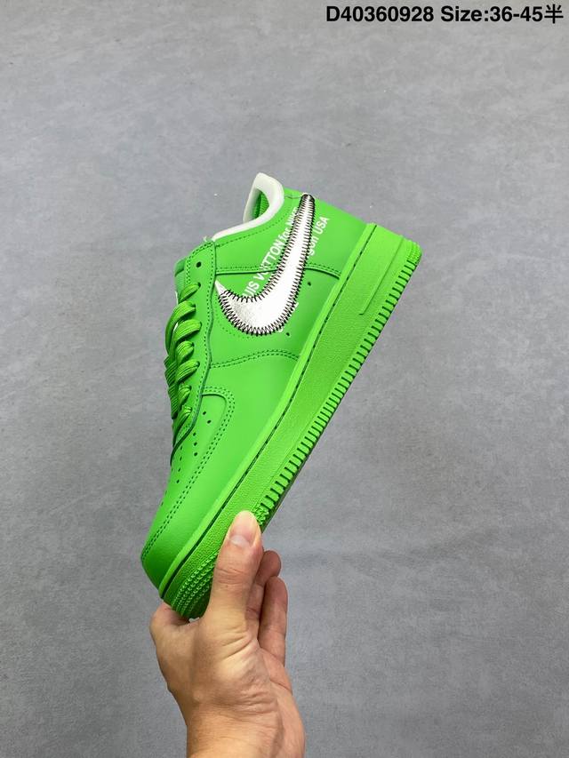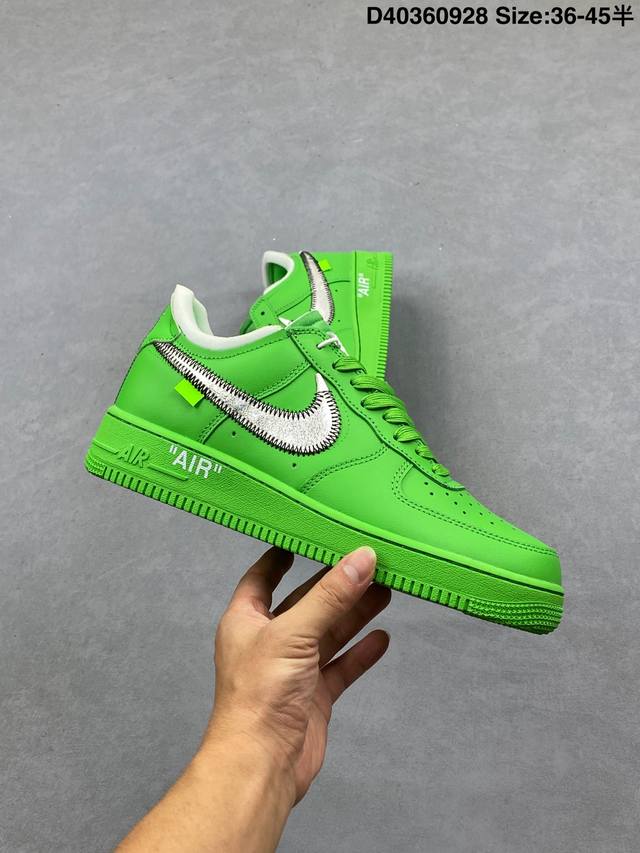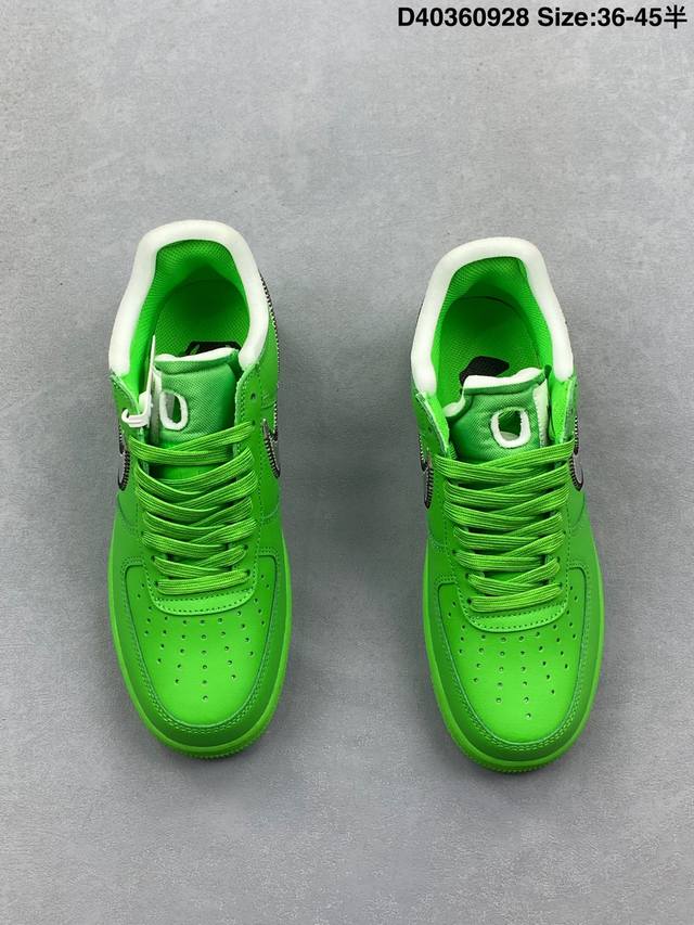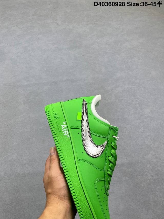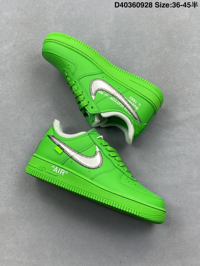 重磅三方联名 Virgil Abloh主理品牌联乘纽约布鲁克林博物馆 New York Brooklyn Museum X Off-White X Nike Air Force 1‘07 Low”Light Green Spark“空军一号经典低帮百搭休闲运动板鞋 “银勾绿”