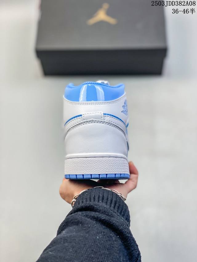真标耐克女款运动板鞋 Nike Air Jordan 1 Retro High Og 乔丹一代Aj1 乔1 Aj1 篮球鞋复刻运动鞋。皮面高帮板鞋的设计灵感源自运动夹克,带你重温入选球队时刻。采用经典学院风配色,搭配耐克大勾设计,为你打造出众风范,伴你奋斗不止。天然皮革鞋面,塑就出众耐穿性和结构感,尽显出众风范。后跟鞋底加入 Air 缓震技术,轻盈缓震。该鞋款的包边采用与元年款 Aj1 相同的版型和厚实缝线细节,缔造稳定支撑效果。