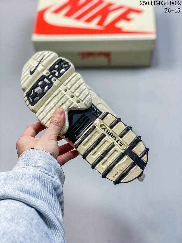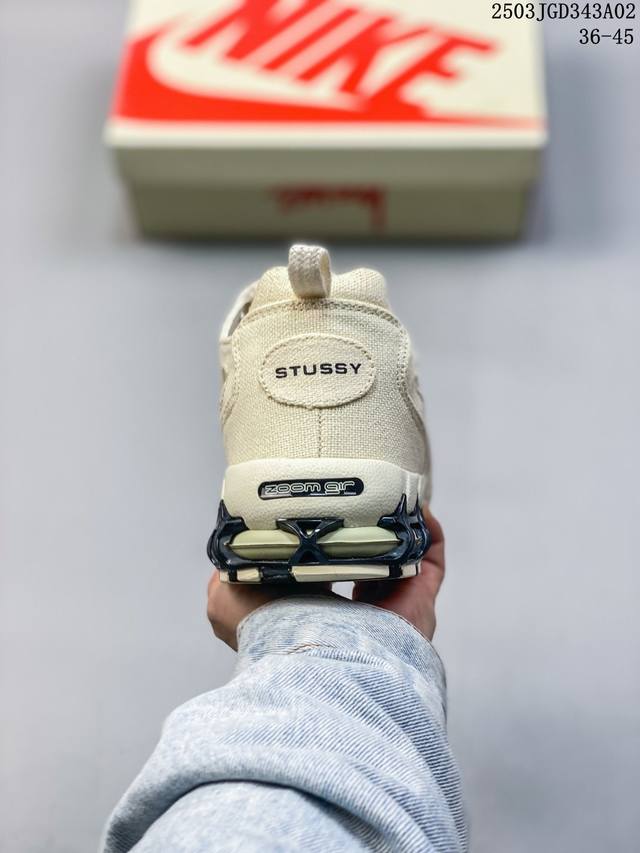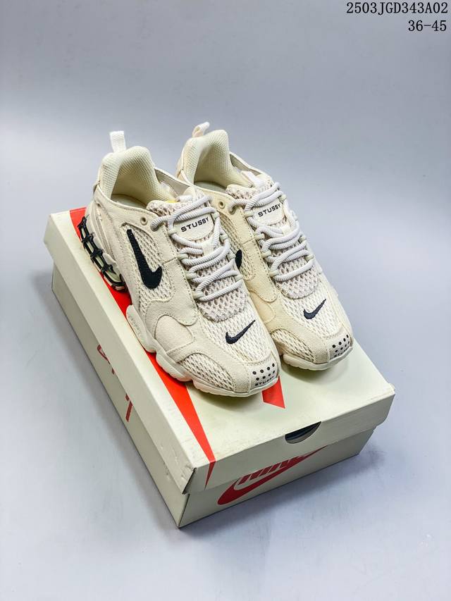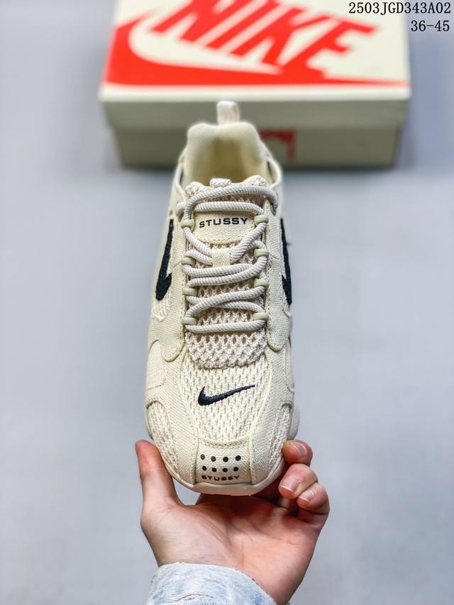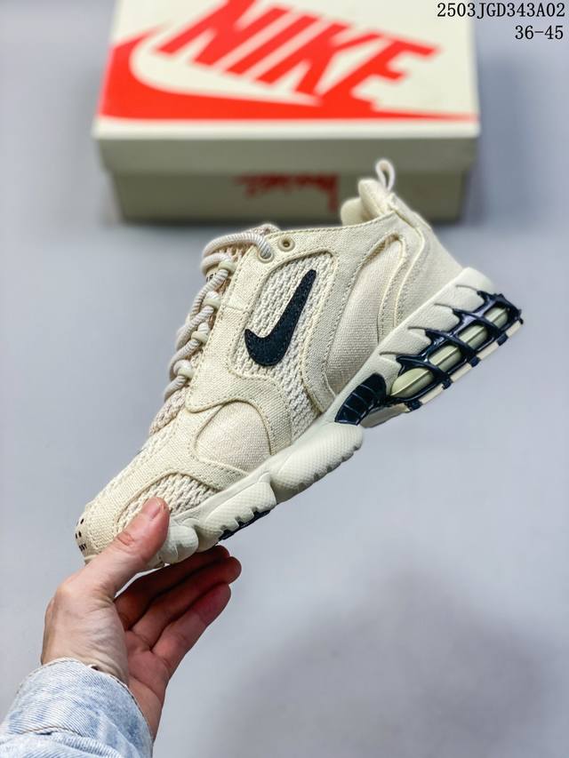 原楦原纸版开发数据采用全工艺棉麻布及网眼布透气材质后掌气垫嵌入Zoom气垫装置这鞋得细品,美国元祖街头潮牌Stussy斯图西 X Nike Air Zoom Spiridon Caged 2斯皮里东牢笼2代系列复古休闲运动慢跑鞋