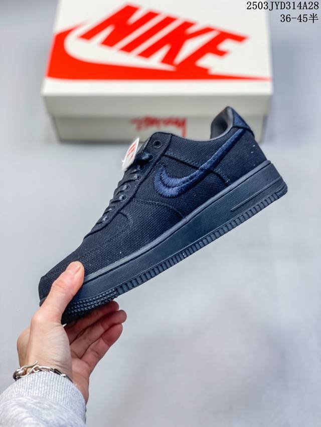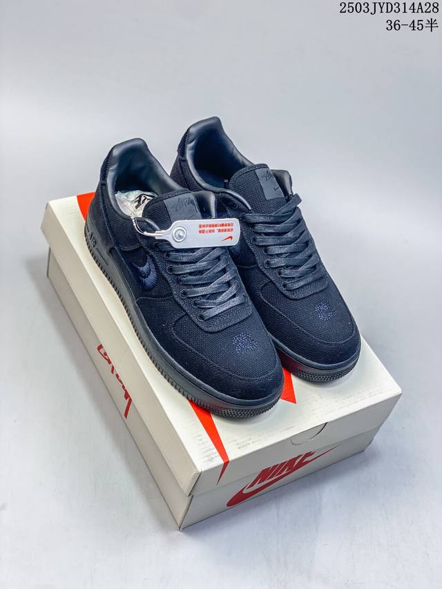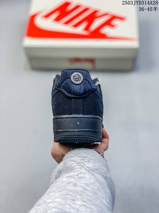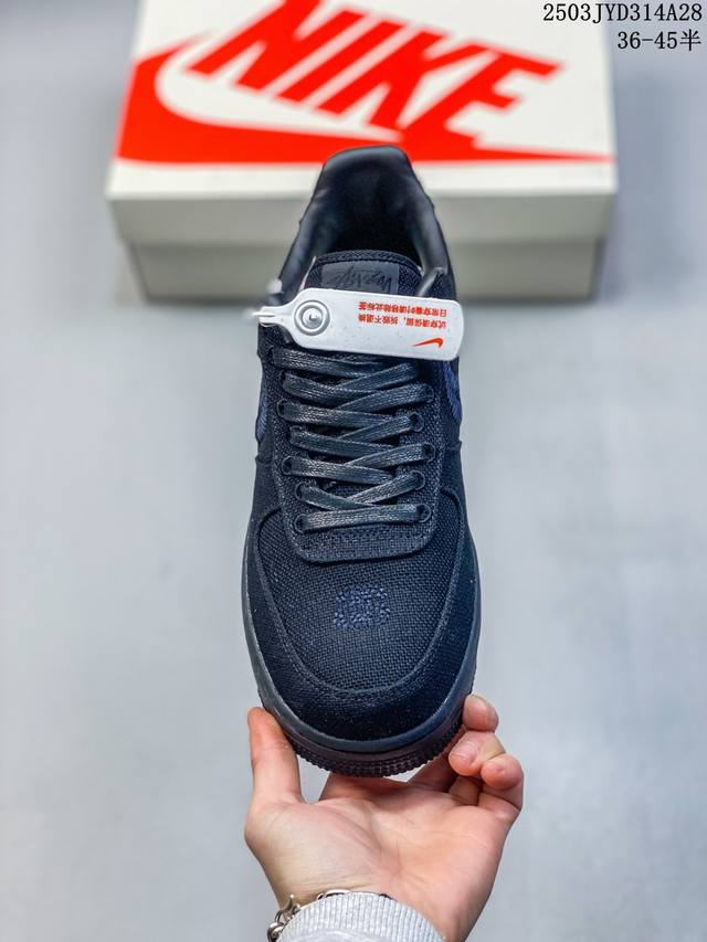 耐克Stussy X Air Force 1 "07Black Cool斯图西联名空军 “黑麻布电绣钩子”货号:Cz9084 001