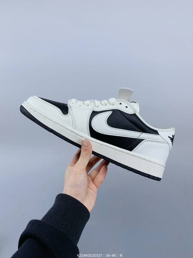 耐克Travis Scott X Fragment Design X Jordan Air Jordan 1 Low Og Sp 联名——“多方联名合作融合了Travis Scott 独特的音乐风格,藤原浩个性的设计风格以及Jordan品牌的经典元素 使其成为一双具有独特身份和价值的鞋子 清新而立体的外观加上联名标识更突出了其独特身份