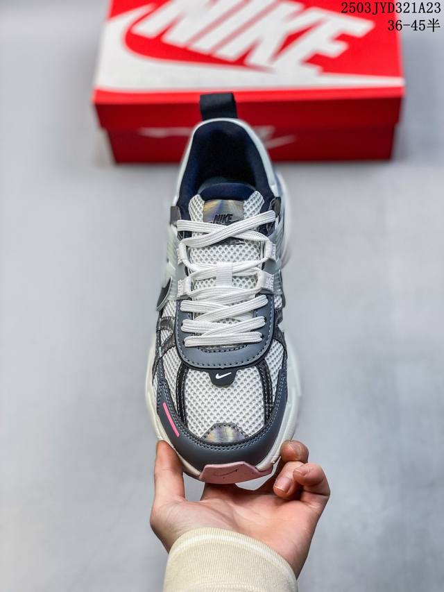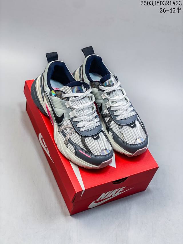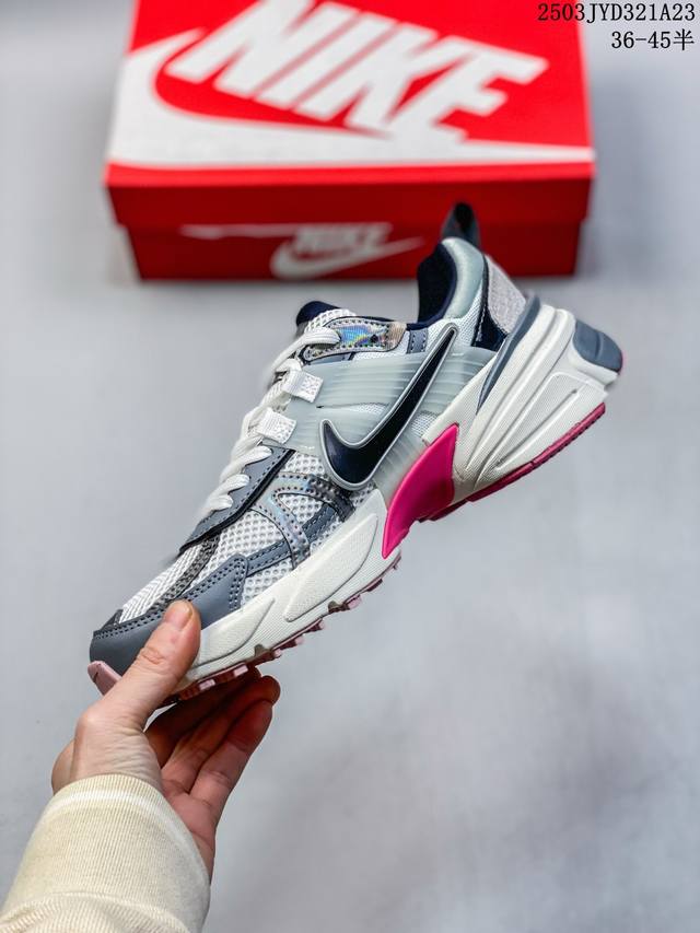 nike/耐克 V2K Run 减震防滑 复古低帮跑步鞋 超火复古跑鞋,采用太空革组合呼吸网眼布鞋面材质,搭载正确4层组合底模,嵌入Tpu加固稳定模块,双层Md发泡缓震中底及防滑橡胶底片最近在时尚圈又掀起了一阵流行复古风,比如 Vomero 5、Nike Initiator.... 等款式的鞋子可谓是火到不行,Nike这双完美平替 Balenciaga 3Xl的Nike V2K Run Runtekk 也是许多潮人争相入手的鞋子之一。鞋款以山峰白为主色调,混搭富有光泽感的金属色元素,鞋身半透明塑料