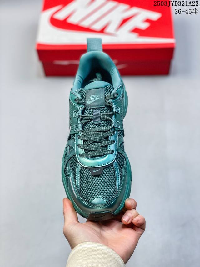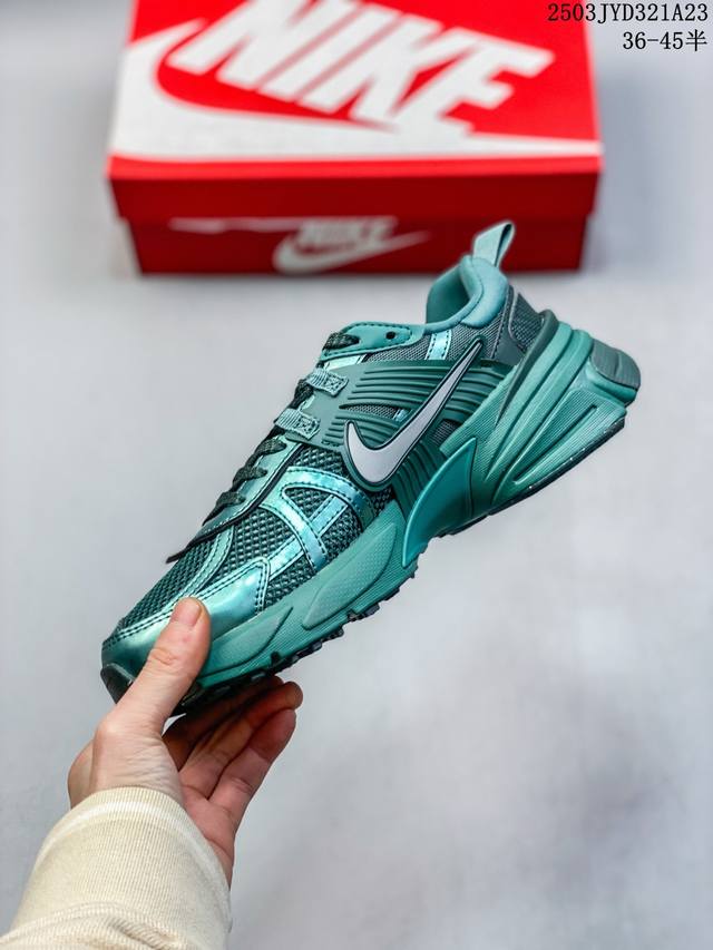 nike/耐克 V2K Run 减震防滑 复古低帮跑步鞋 超火复古跑鞋,采用太空革组合呼吸网眼布鞋面材质,搭载正确4层组合底模,嵌入Tpu加固稳定模块,双层Md发泡缓震中底及防滑橡胶底片最近在时尚圈又掀起了一阵流行复古风,比如 Vomero 5、Nike Initiator.... 等款式的鞋子可谓是火到不行,Nike这双完美平替 Balenciaga 3Xl的Nike V2K Run Runtekk 也是许多潮人争相入手的鞋子之一。鞋款以山峰白为主色调,混搭富有光泽感的金属色元素,鞋身半透明塑料