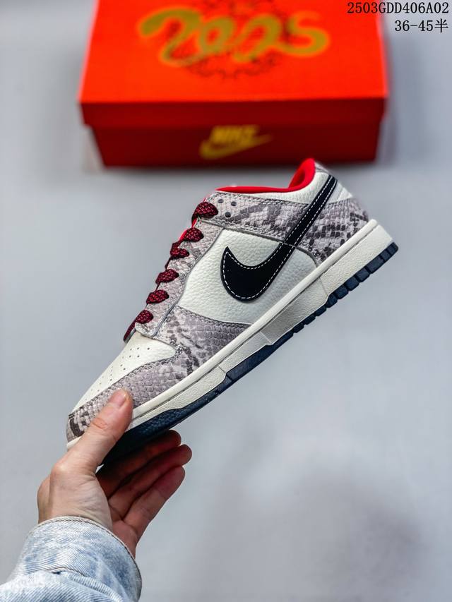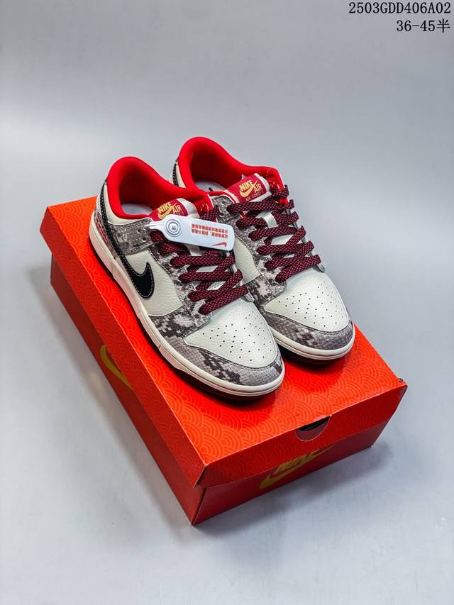 【真标】真标 耐克 Nike Sb Dunk Low Pro 男女同款运动鞋复古板鞋 2025年新款 蛇年限定,尽情迈步,彰显个性风采。采用柔软皮革鞋面,经久耐穿,塑就如元年款 Dunk 般的复古质感。鞋头透气孔,搭配鞋口和鞋舌形状,忠实沿袭元年款经典外观。全掌型橡胶外底,造就非凡抓地力。Dunk 起初专为篮球运动打造,于 80 年代末成为滑板界新宠,现已跃升成为街头时尚标杆。加垫低帮鞋口结合耐穿外底,助你自信舞动。