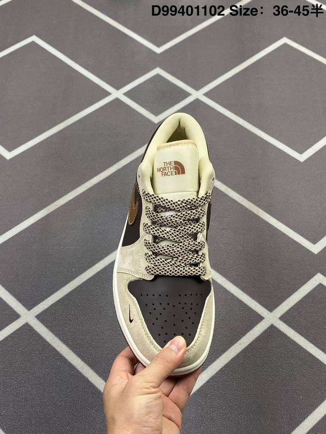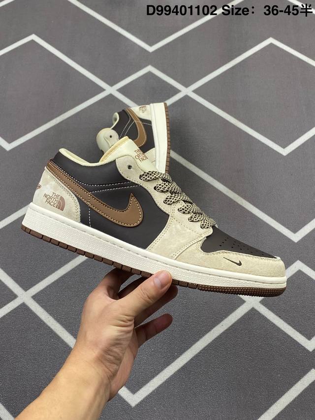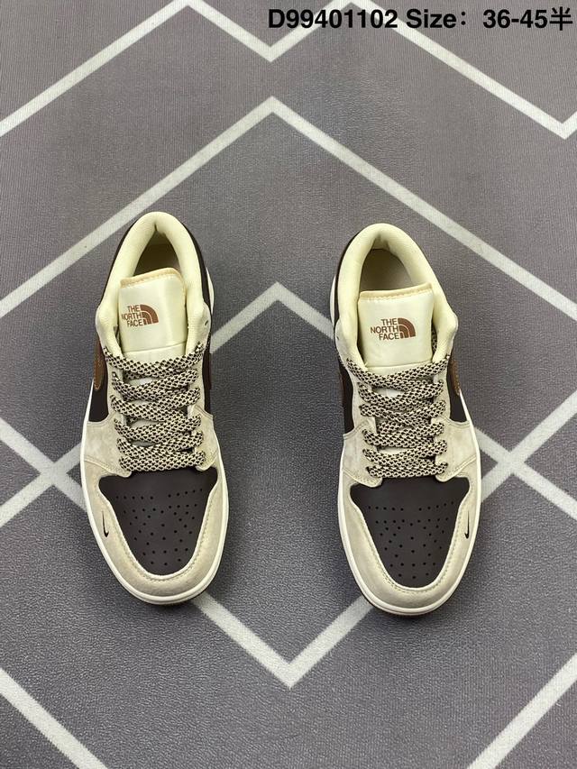【公司级】耐克 乔丹Air Jordan 1 Low Aj1 乔1 乔丹1代Aj1 北面 北脸 联名 低帮复古文化休闲运动篮球鞋。从1985 年面世的元年款汲取设计灵感,采用简洁大方的经典外观,熟悉中带一抹新颖。此款运动鞋采用经典设计,可与不同风格轻松搭配,助你彰显出众风采。鞋底加入内嵌式 Air 缓震技术,营造轻盈缓震体验,天然皮革与合成材质组合鞋面经久耐穿,彰显优质风范。硬质橡胶外底,提供可驾驭多种地面的强劲抓地力。