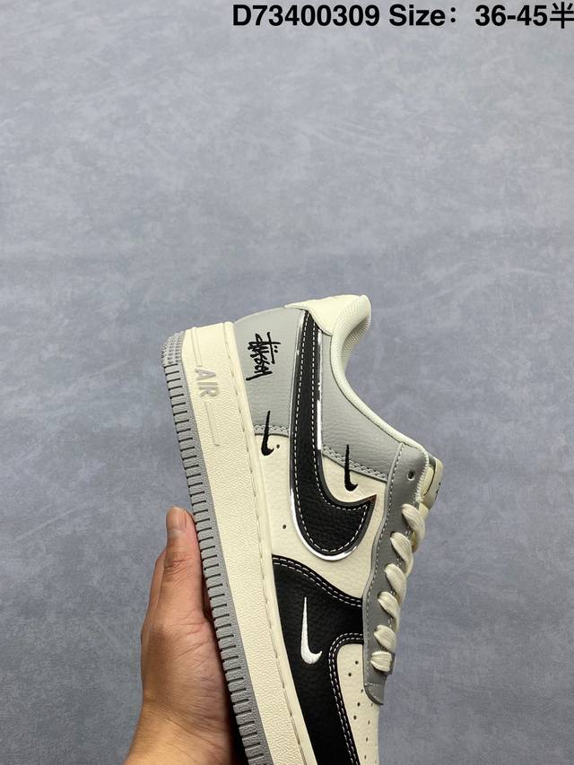 Nike Air Force 1 Low 07 X Stussy 白灰黑小钩