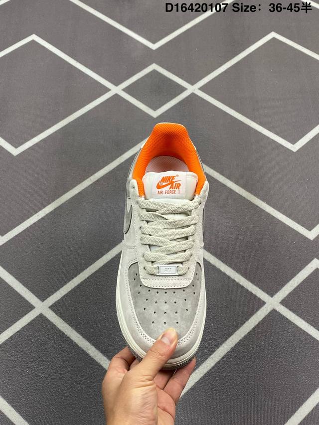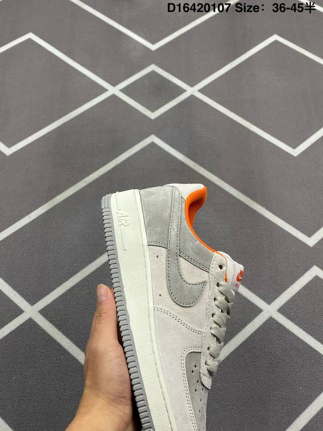 公司级 Nike Air Force 1 '07 灰橙麂皮 空军一号低帮休闲板鞋 Cq5059-102