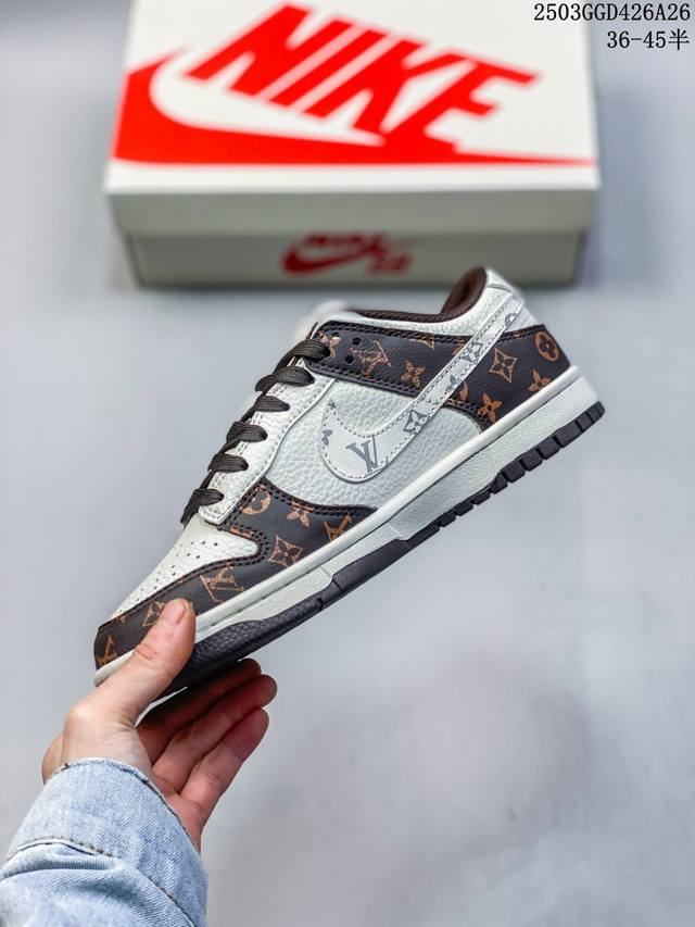 海外爆款限量发售!高端定制Nike Sb Dunk Low Lv路易威登联名 -——白棕摩卡印花 高端定制 低帮休闲板鞋 定制鞋盒 大厂纯原品质出货 超高清洁度 皮料切割干净无任何毛边 细节完美