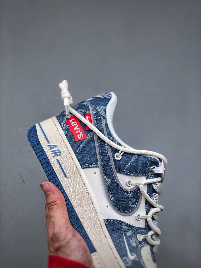Nike Air Force 1 Low 07 X Levi's 白蓝牛仔小钩绑带满天星原楦头原纸板 打造纯正低帮空军版型专注外贸渠道 全掌内置蜂窝气垫 原盒配件 原厂中底钢印、拉帮完美 官方货号:Sj1198 001 尺码:36-45(半)