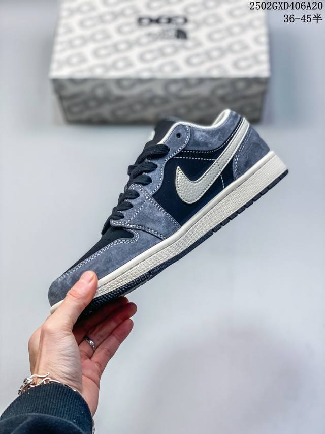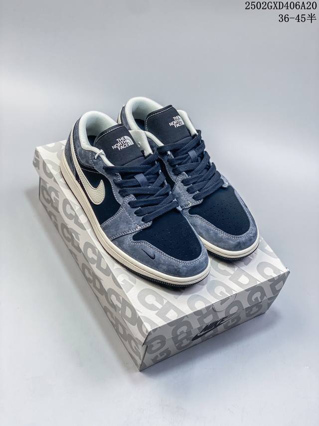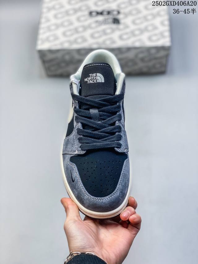 海外爆款限量发售!Nike Jordan Air Jordan 1“北面联名——黑灰白勾” 高端定制 低帮 复古 减震 防滑 耐磨 篮球鞋 定制鞋盒 大厂纯原品质出货 超高清洁度 皮料切割干净无任何毛边 细节完美