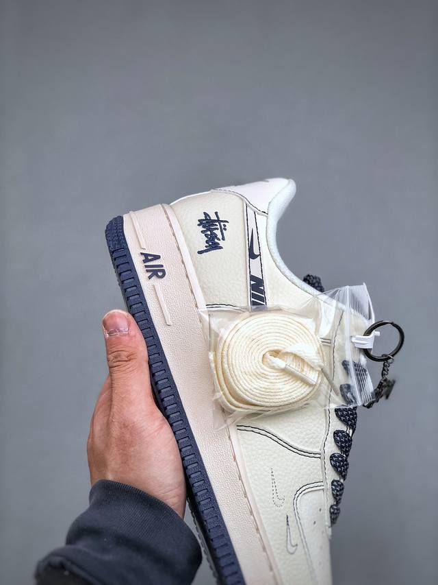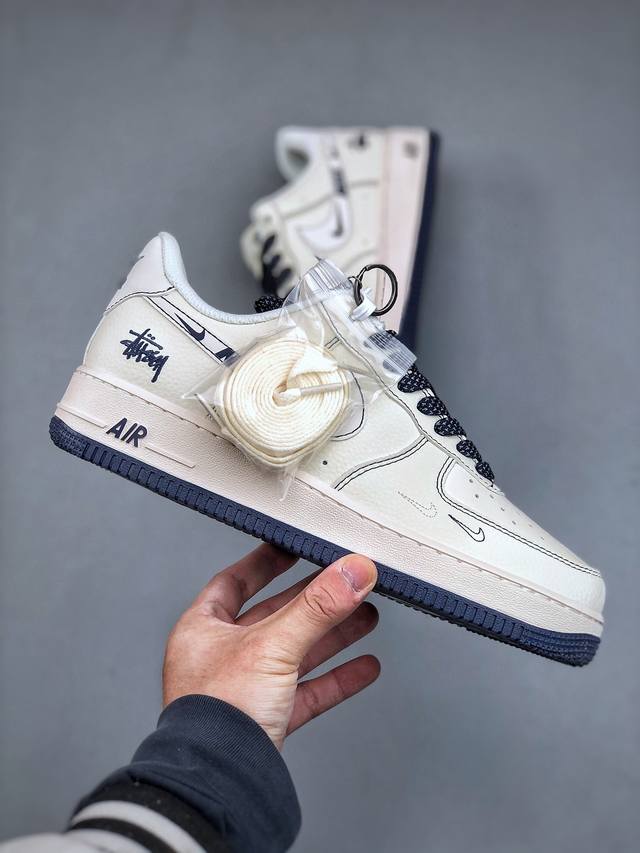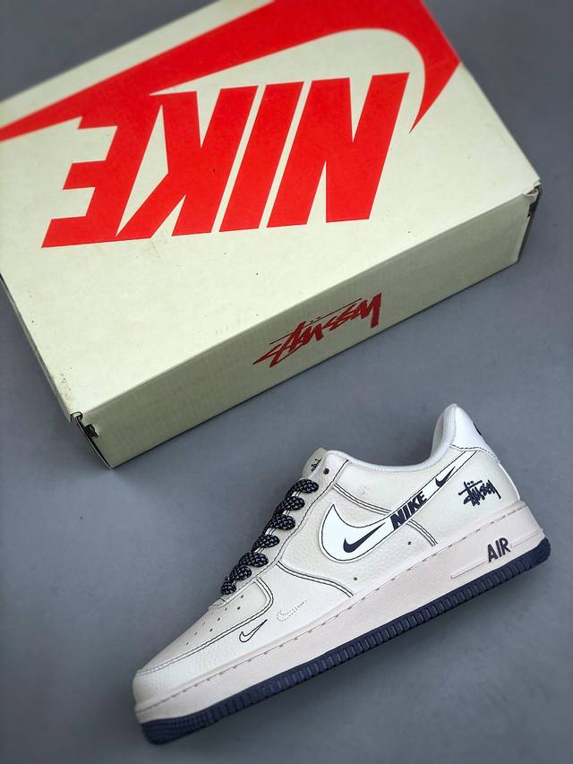 390支持放店 Nike Air Force 1 Low 07 X Stussy 白蓝缝线小钩满天星原楦头原纸板 打造纯正低帮空军版型专注外贸渠道 全掌内置蜂窝