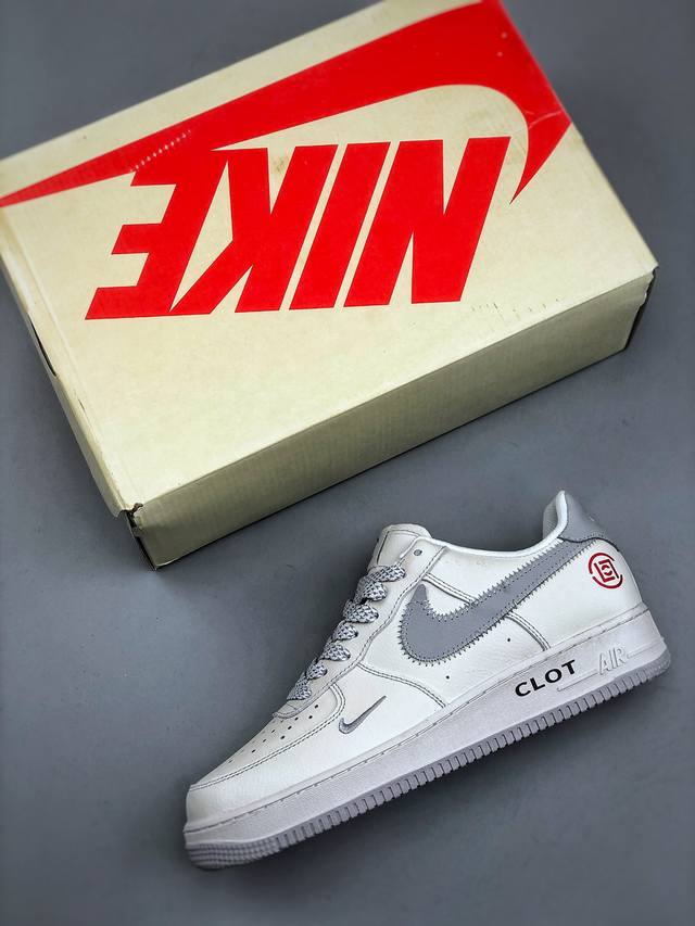 390支持放店 Nike Air Force 1'07 Low Clot联名 白灰 空军一号低帮休闲板鞋 Gx 030609 #原楦头原纸板 原装鞋盒 定制五金