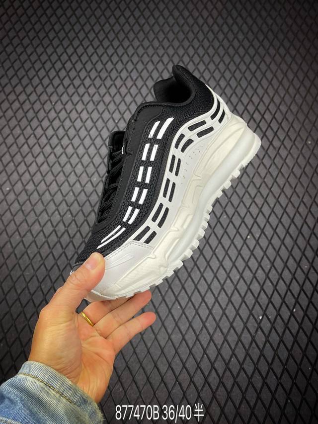 搭配全掌式 Max Air 气垫为步伐注入充沛活力中底完美拉帮 钢印注胶孔一应俱全 半透明中底和外底为整体造型画龙点睛 打造舒心时尚