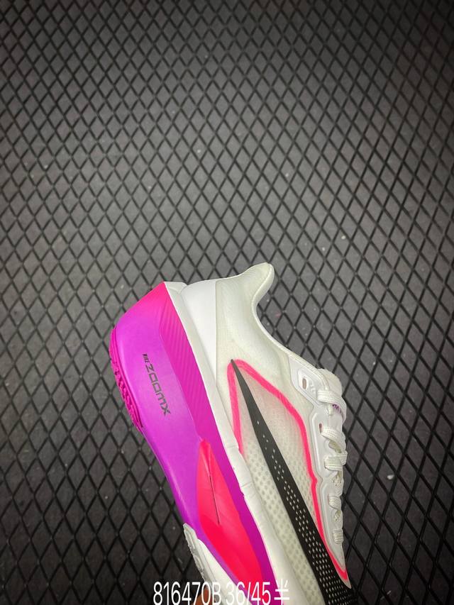 飞织低帮休闲运动慢跑鞋 厚底增高 老爹鞋 此鞋专为短跑运动员而生 是为 5 至 10 公里距离的赛事和训练打造 整体设计采用流线型的轻质工程网眼材质构成鞋面 并与其他 Running 旗舰鞋款同样搭载全脚掌 Zoomx 缓冲中底 搭配 Pebax 物料与橡胶外底 Zoomx Streakfly 首发配色以Prototype呈现 其灵感是来自开发期间的磨损测试 透过编号的标记与内侧的预期跑步距离突出研发过程