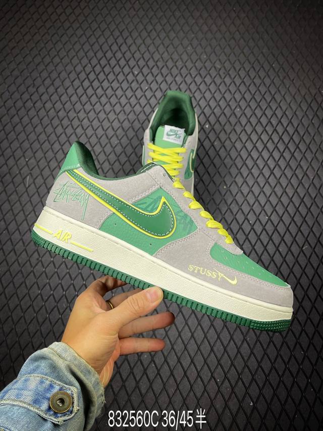 C 海外限量发售!公司级Nike Air Force 1 '07 Low “斯图西联名 米深灰帆布”空军一号 低帮 运动鞋 休闲鞋 折边针车 工艺难度大...
