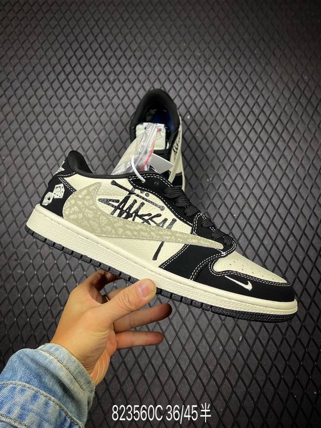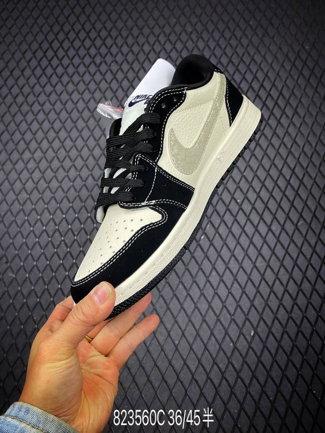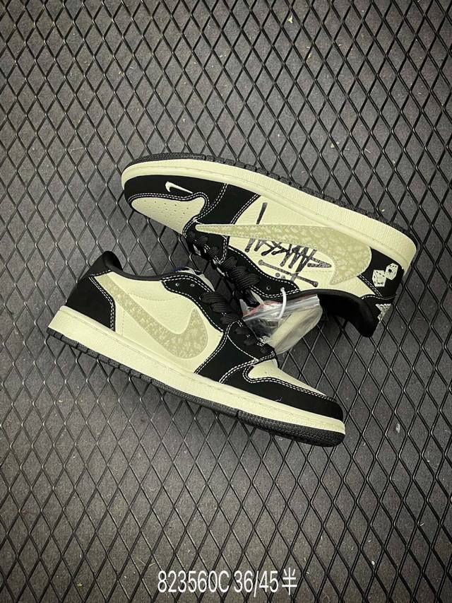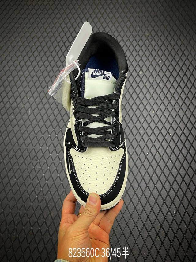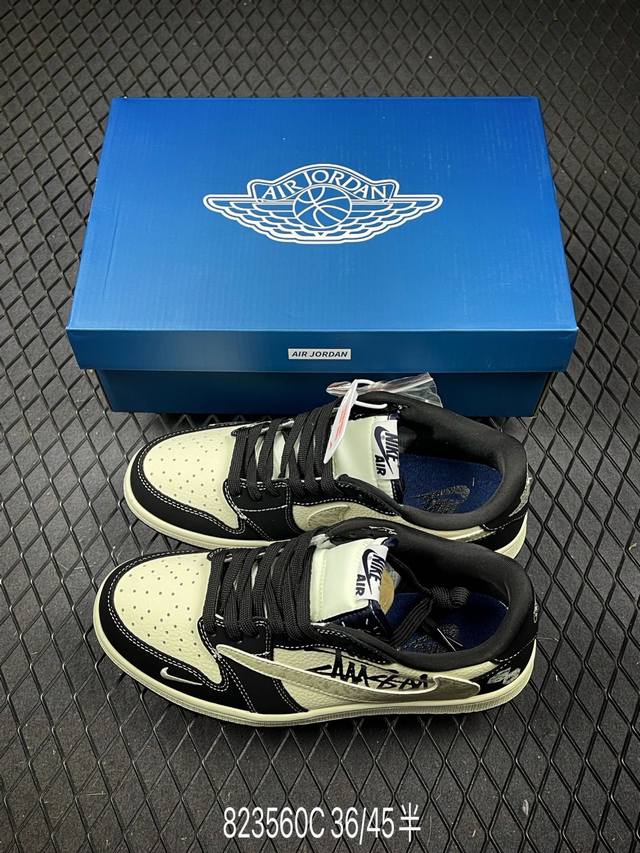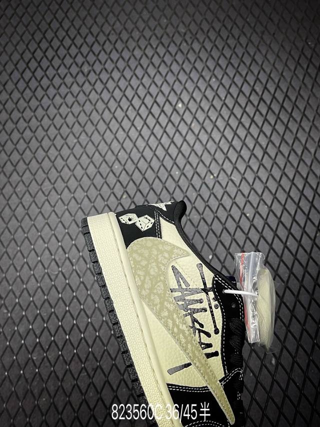 C 公司级Nike Air Jordan 1 X Travis Scott Aj1倒勾 乔一倒钩 ‘Diy’定制 耐克 低帮文化篮球鞋 完美品质出货 细节如图所