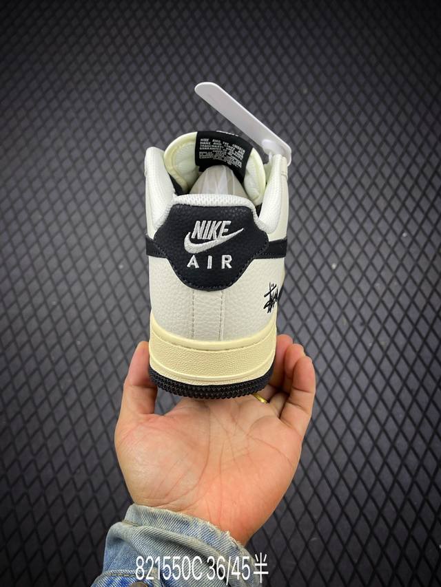 Nike Air Force 1‘07 Low 联名 黑蓝双拼米黑 空军一号低帮休闲板鞋