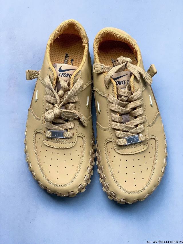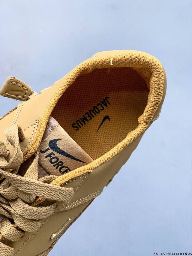Jacquemus X Nike J Force 1 Low 防滑耐磨低帮 运动休闲鞋 欧美走秀款英伦复古 翘式鞋头设计,响应灵活,保护脚趾。采用经典鞋型,融入全新细节点缀,整体简约且富有质感。鞋底耐磨材质搭配丰富的防滑底纹设计,可平稳抓地,不易打滑。