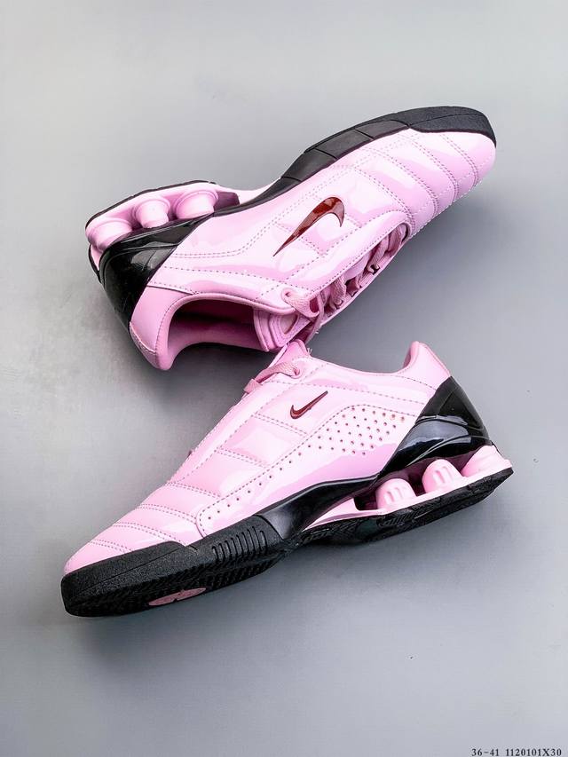 Nike 携手 Maha Amsterdam 推出一款备受追捧的鞋款:Nike T90 Shox Magia。这款最初于 2003 年推出的足球灵感鞋型,现在将以未来主义锋芒和高端升级惊艳回归。 DDD 此次联名包含两款独特配色,其中一款采用高光黑色漆皮鞋面,搭配银色后跟 Shox 缓震柱。 DDD 第二款则采用金属银,饰以醒目的炫彩点缀和深蓝色 Shox 支柱。 DDD 两款鞋均配备绗缝鞋面、迷你 Swoosh以及联名 Maha 鞋垫。这些细节将 2000 年代初的美学完美融入当今的球鞋文化。 DDD