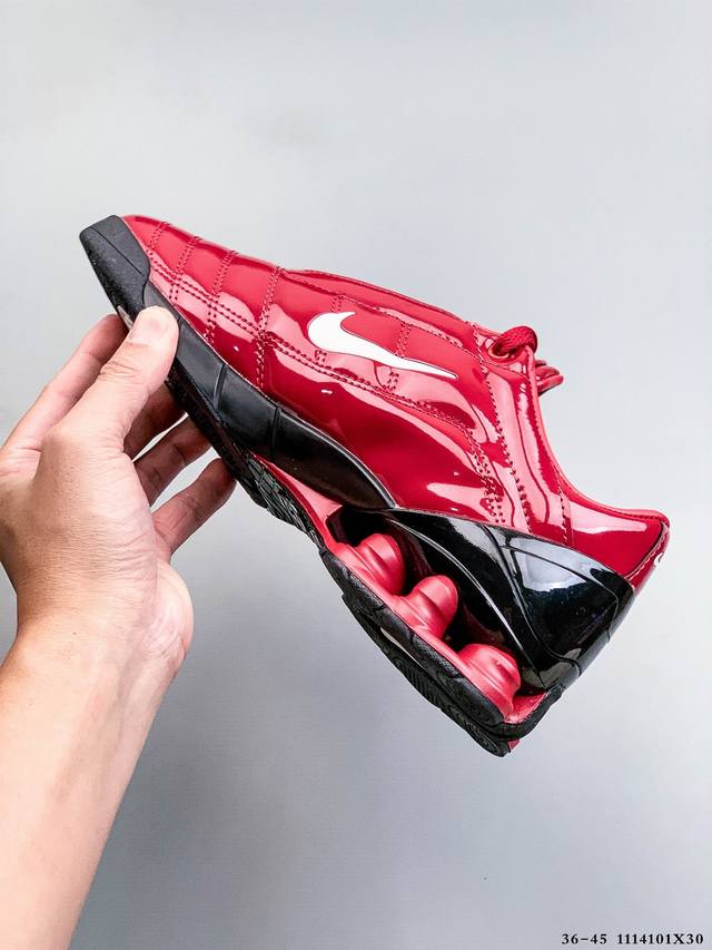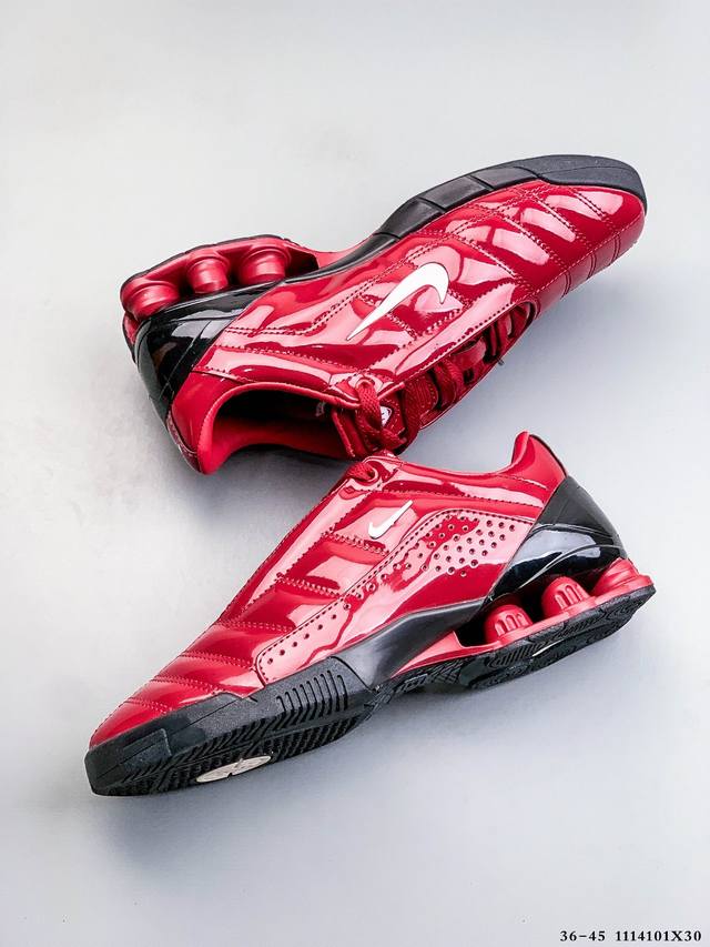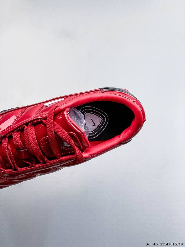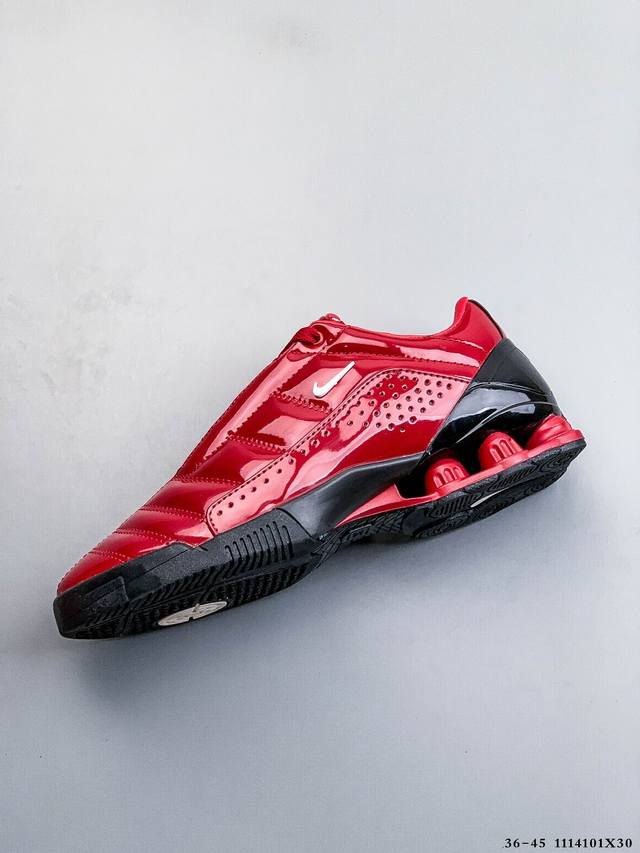 Nike 携手 Maha Amsterdam 推出一款备受追捧的鞋款:Nike T90 Shox Magia。这款最初于 2003 年推出的足球灵感鞋型,现在将以未来主义锋芒和高端升级惊艳回归。 DDD 此次联名包含两款独特配色,其中一款采用高光黑色漆皮鞋面,搭配银色后跟 Shox 缓震柱。 DDD 第二款则采用金属银,饰以醒目的炫彩点缀和深蓝色 Shox 支柱。 DDD 两款鞋均配备绗缝鞋面、迷你 Swoosh以及联名 Maha 鞋垫。这些细节将 2000 年代初的美学完美融入当今的球鞋文化。 DDD