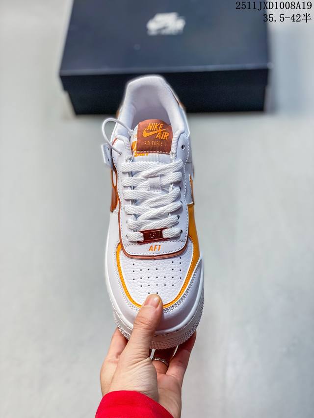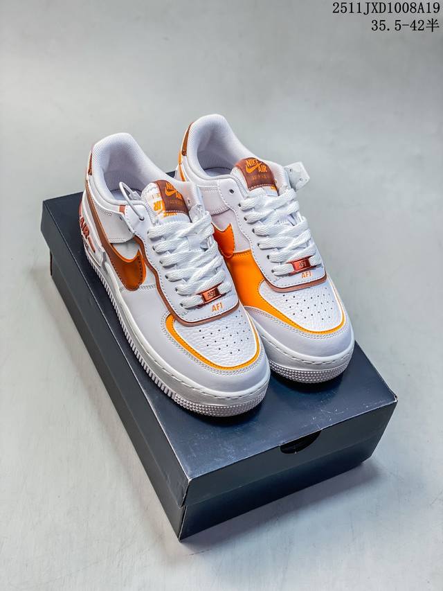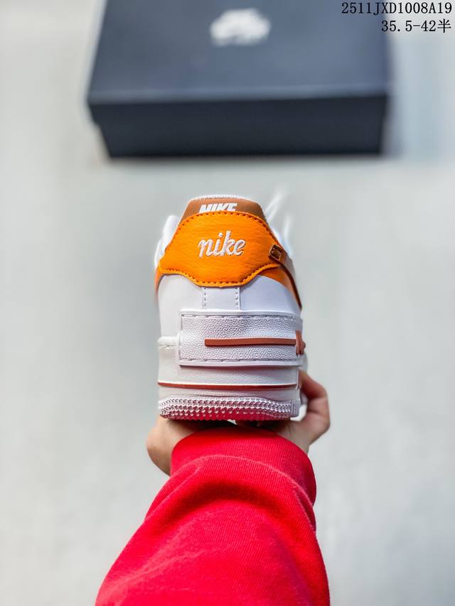 Nike 耐克低帮板鞋 空军一号 Af1马卡 龙Af1厚底增高百搭运动板鞋 Nike Air Force 1“Shadow”造型设计上与 Sacai X Nik