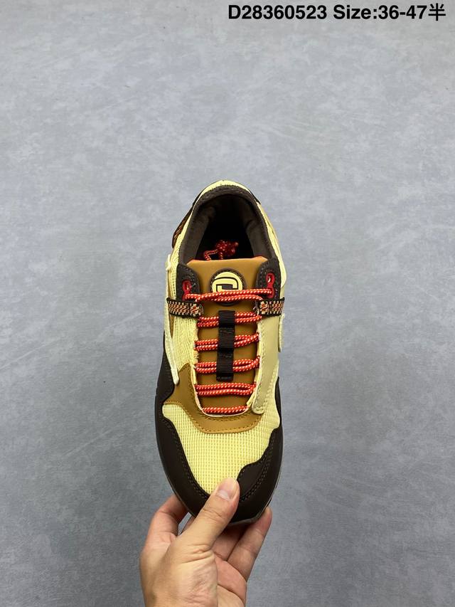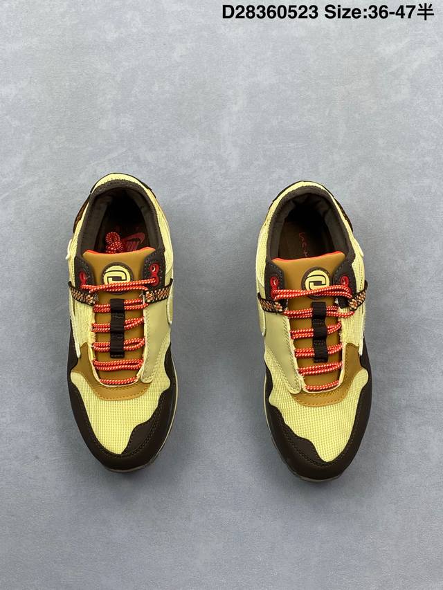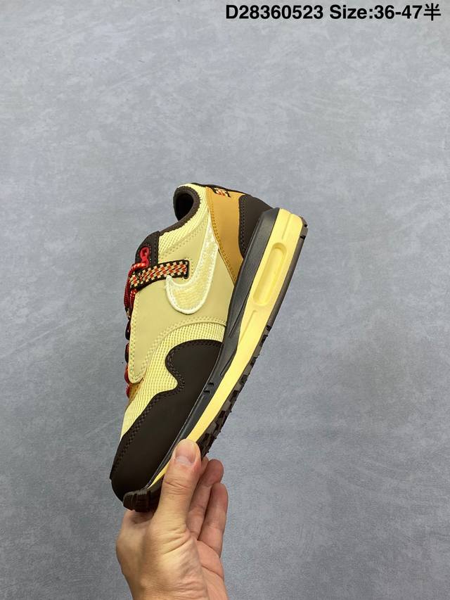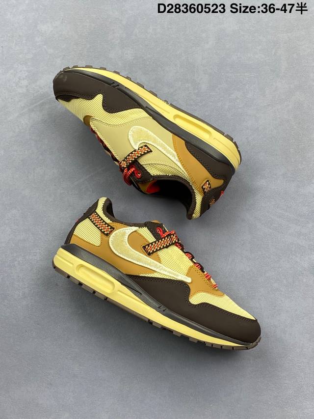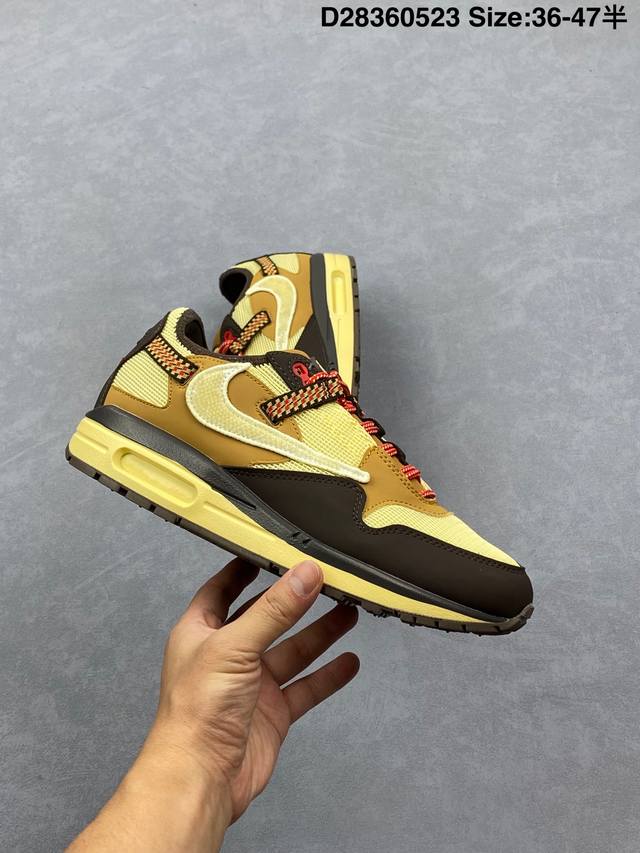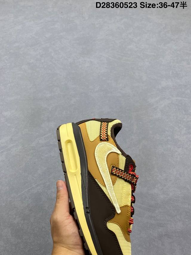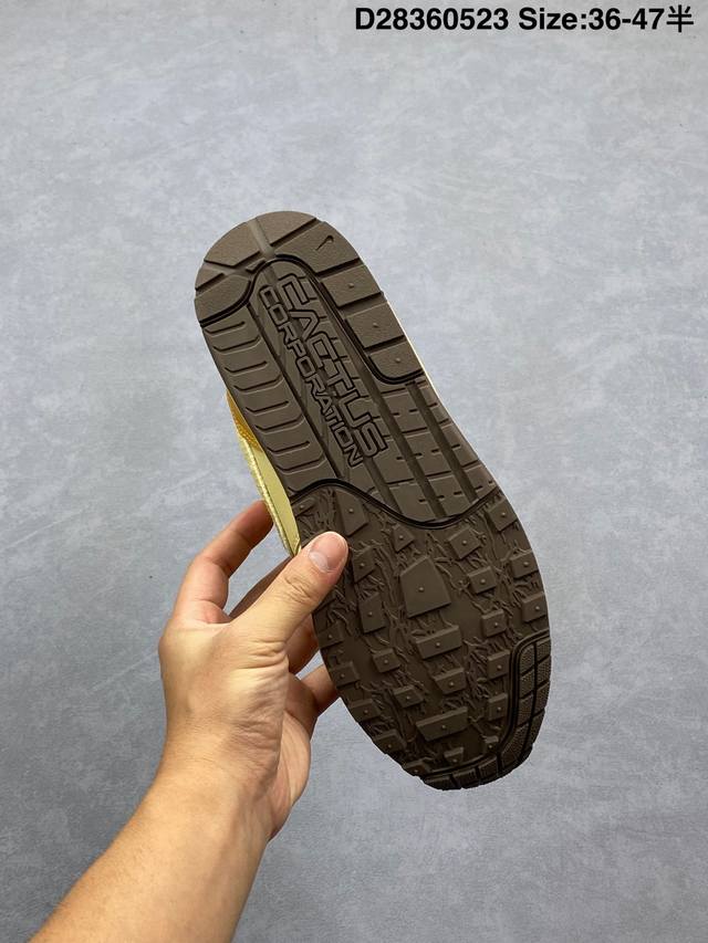 nike 耐克 升级全新原楦档案原纸版数据开发版型 采用同源一致prime Asia原厂丝光磨砂皮革饰片组合原装三明治网布物料 原厂材质纯手工复杂串珠效果倒钩子 正确二次成型 猛帮 成型工艺区别市面版本 升级回弹pu缓震中底材质 全新独家开模底纹橡胶鞋底 联名倒钩 再度重磅联乘当红说唱歌手 特拉维斯 斯科特Travis Scott X Nike Air Max 1 Wheat 改版款低帮复古百搭休闲运动慢跑鞋 小麦色米倒钩