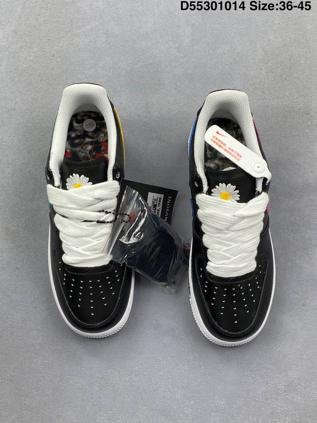 Nike 耐克 原楦原纸版开发版型,采用硬质涂层处理皮革鞋面材质,内置全掌Air Sole气垫,外置防滑耐磨橡胶大底重磅 权志龙 X 耐克Af1 新联名3.0计划来了!携手G-Dragon权志龙个人品牌Peaceminusone X Nike Air Force 1 07 Low Para-Noise 3.0 空军一号系列低帮经典百搭休闲运动板鞋“做旧黑彩色钩子雏菊3.0 Aq369 04 类型:男女鞋 码数:36 36.5 37.5 38 38.5 39 40 40.5 41 42 42.5 43 44