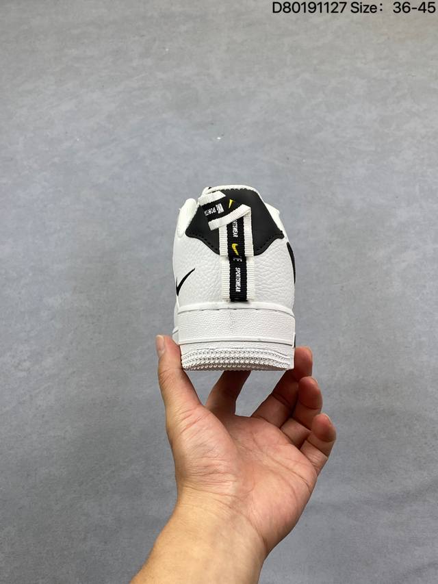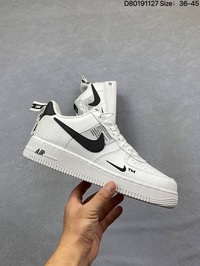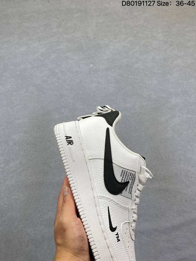 Nike 耐克 原楦原纸版数据开发版型,采用硬质荔枝纹牛培皮革鞋面材质,内置全掌Air Sole气垫经典球鞋大变身,耐克Nike Air Force 1 Low 07 Lv8 Utility pack Black White 空军一号经典低帮百搭休闲运动板鞋“皮革白黑双钩解构提拉 Aj7747-001 DDD 类型:男女鞋 DDD 码数:36 37 38 39 40 41 42 43 44 45 DDD 编码:D80191127 DDD