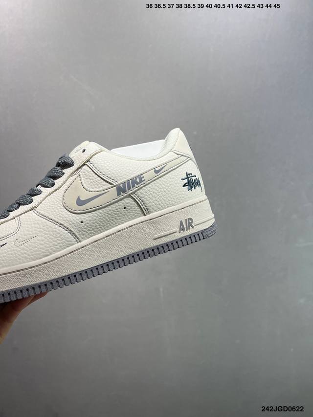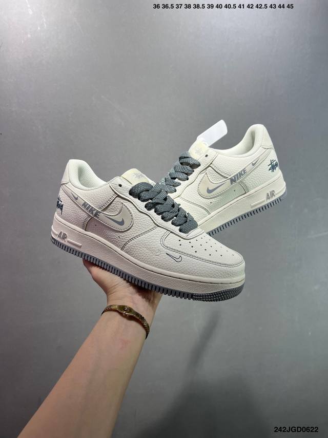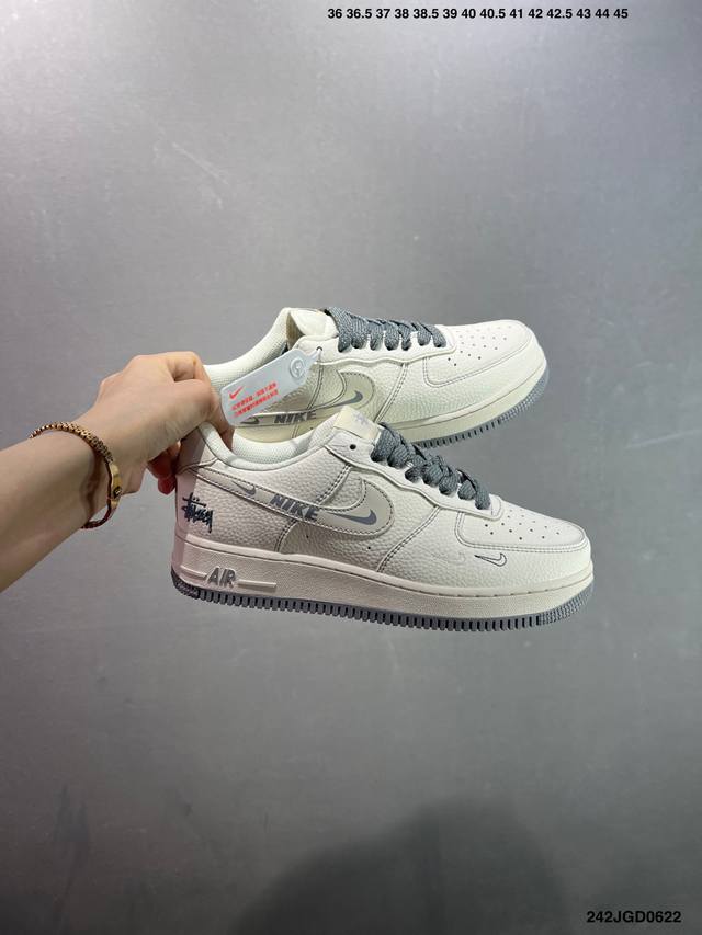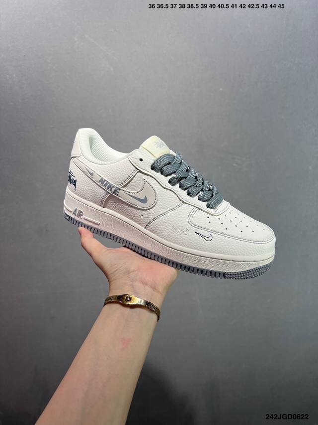 Nike Air Force 1 ‘07 Low “斯图西联名 米灰Nike小勾”空军一号 低帮 运动鞋 休闲鞋 折边针车 工艺难度大 原楦头原纸板 原装鞋盒 定制五金配件 内置全掌气垫 原厂鞋底