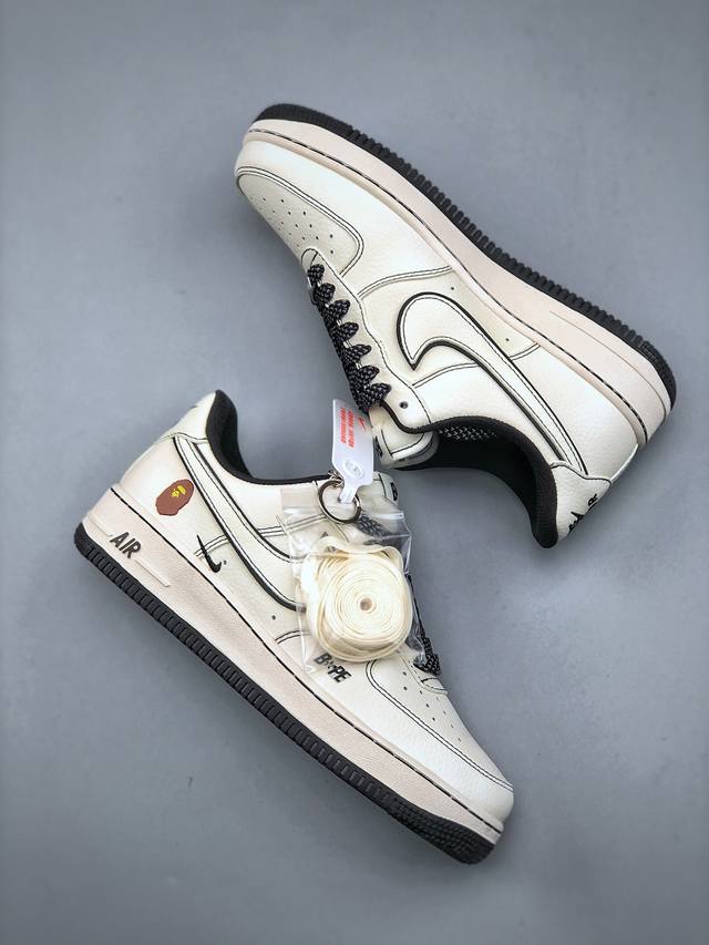 / Nike Air Force 1 '07 Low “Bape联名 黑线满天星”空军一号 低帮 运动鞋 休闲鞋 折边针车 工艺难度大 原楦头原纸板 原装鞋盒 定制