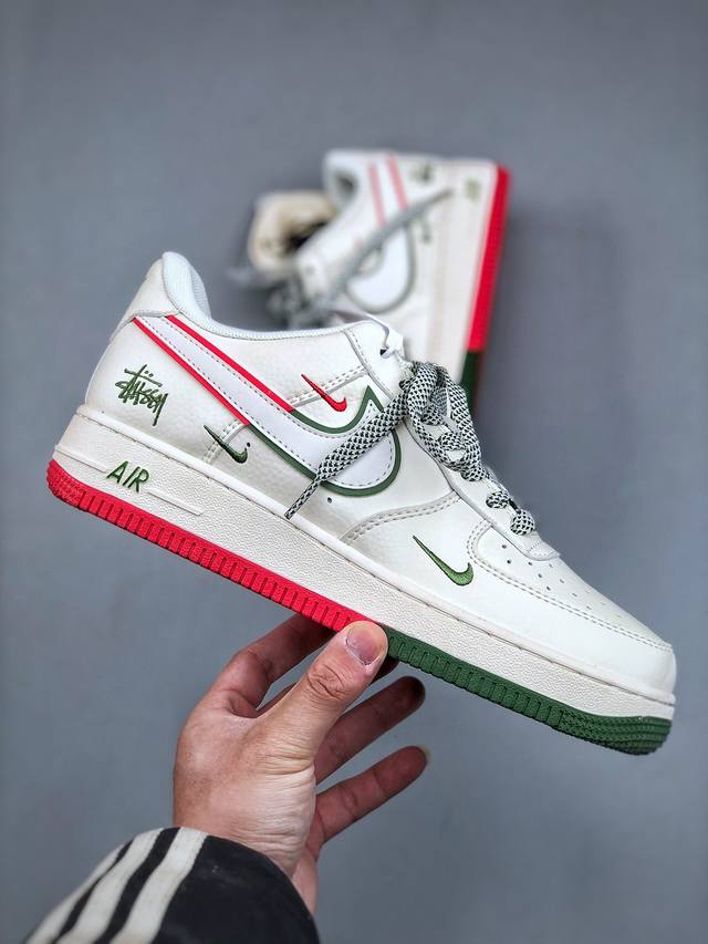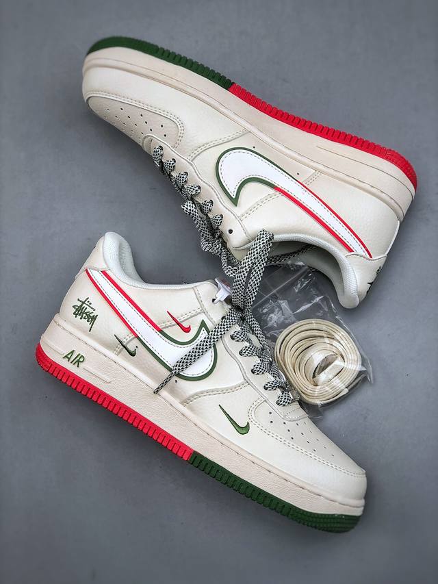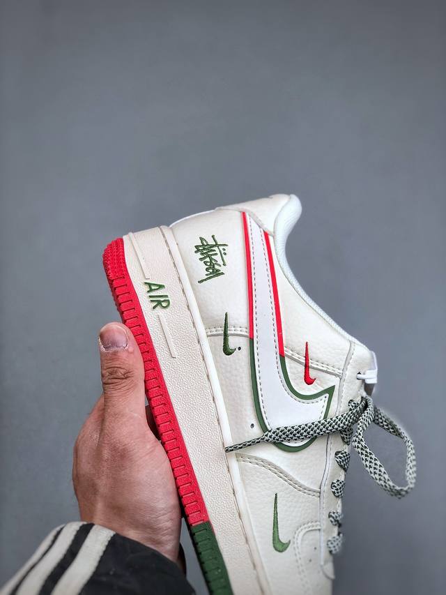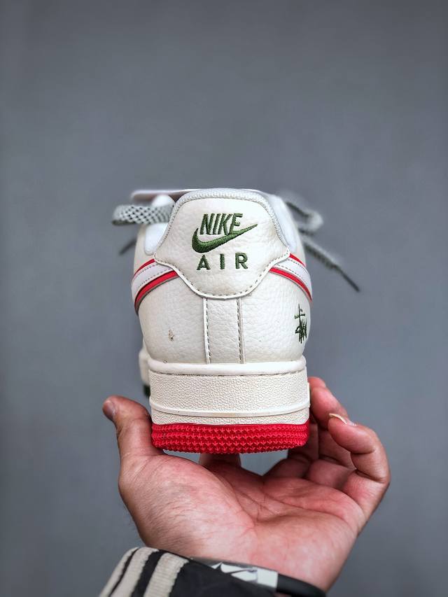 Nike Air Force 1 Low 07 X Stussy 白绿红三小钩满天星原楦头原纸板 打造纯正低帮空军版型专注外贸渠道 全掌内置蜂窝气垫 原盒配件