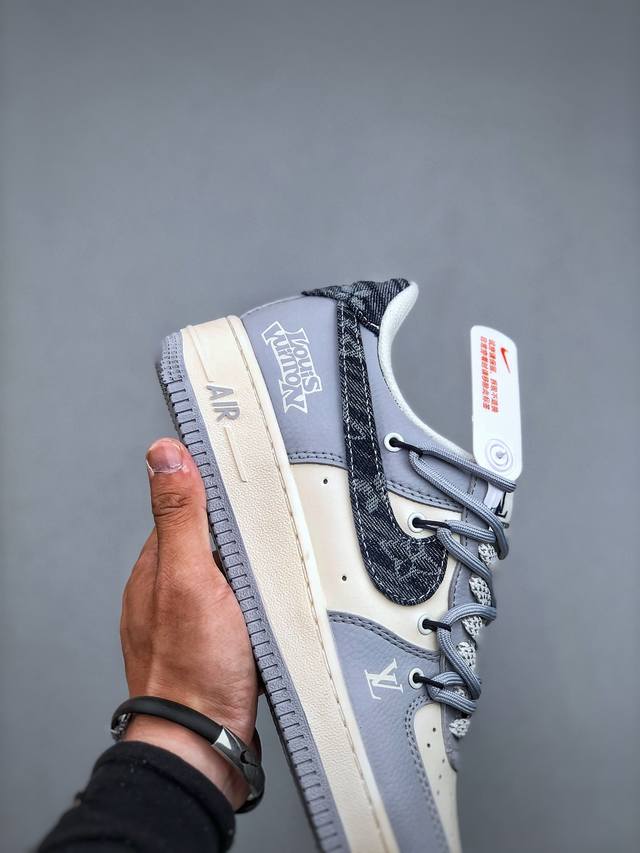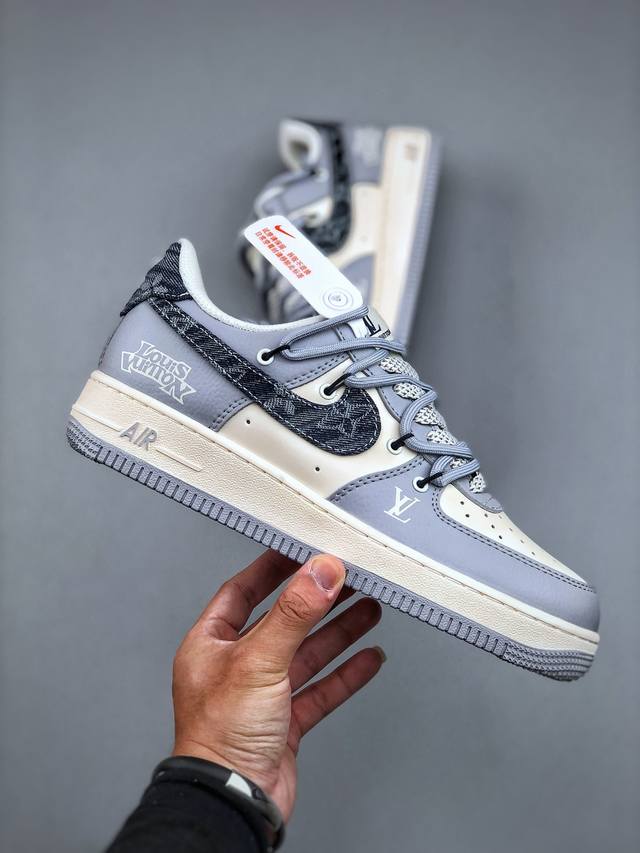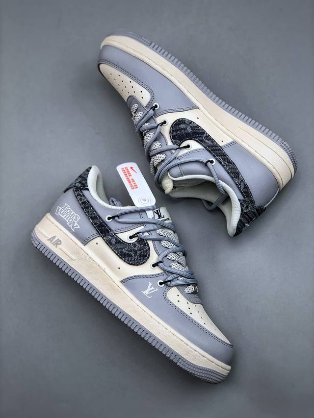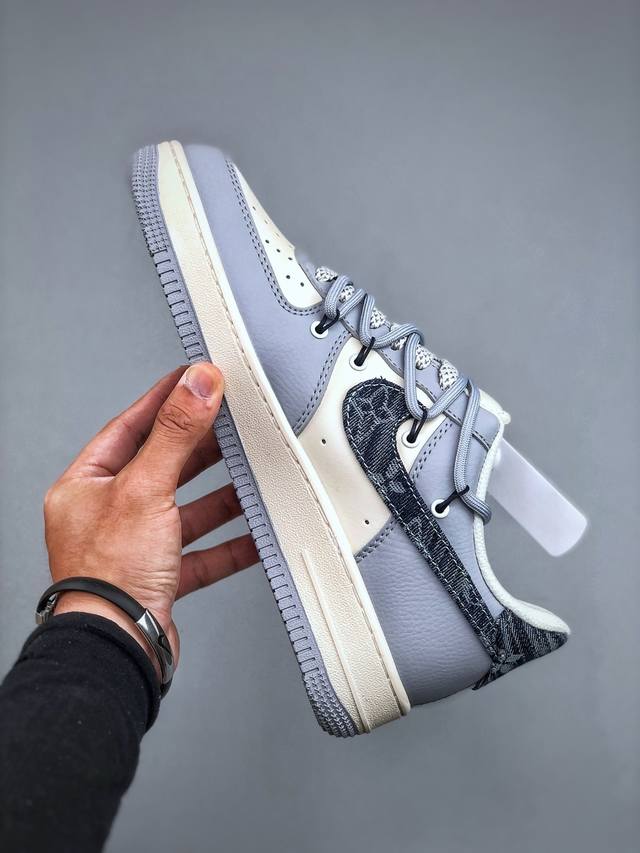Nike Air Force 1'07 Low Lv联名 灰蓝帆布抽绳 空军一号低帮休闲板鞋 Dm6868-099 #原楦头原纸板 原装鞋盒 定制五金配件 内置