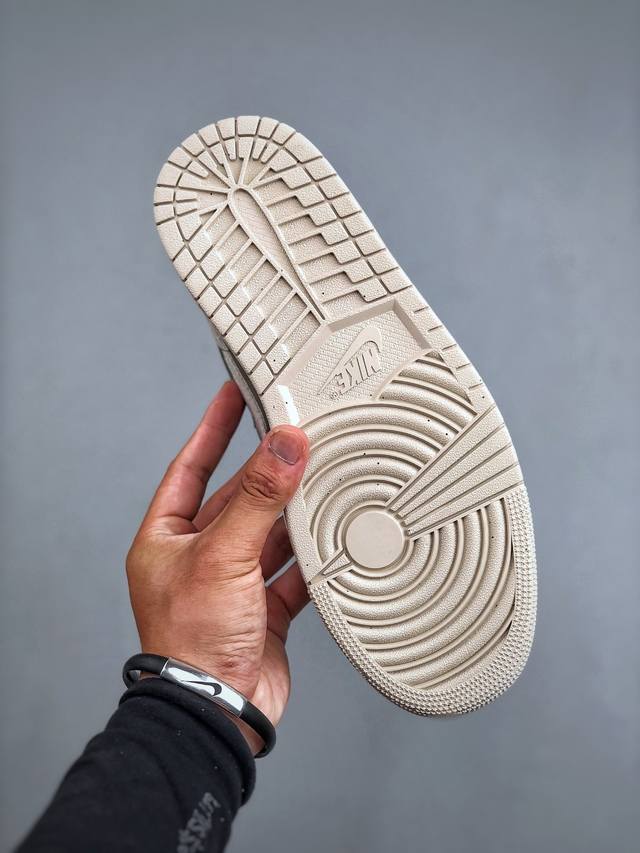 海外爆款限量发售!公司级 Nike Jordan Air Jordan 1“石头岛联名 米白黑双拼” 高端定制 低帮 复古 减震 防滑 耐磨 篮球鞋 定制鞋盒