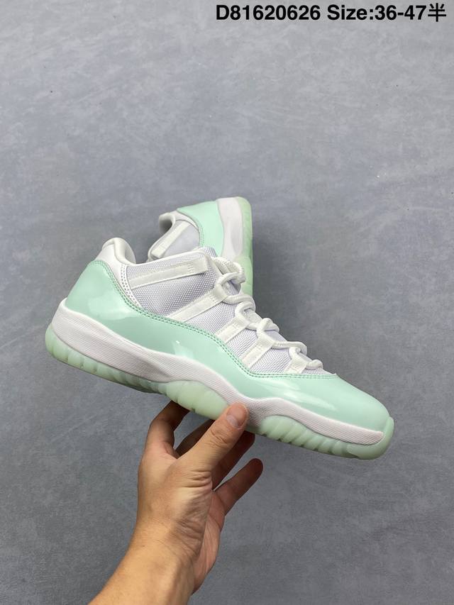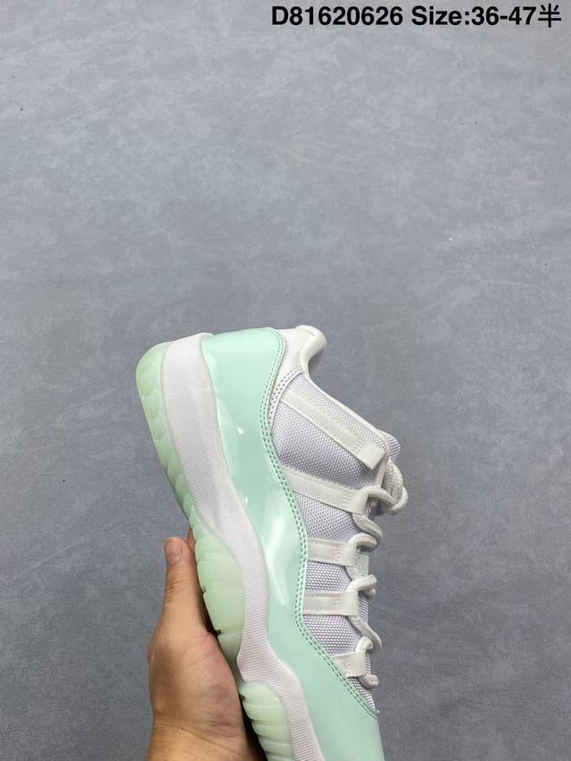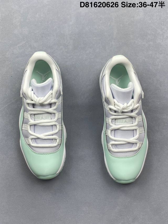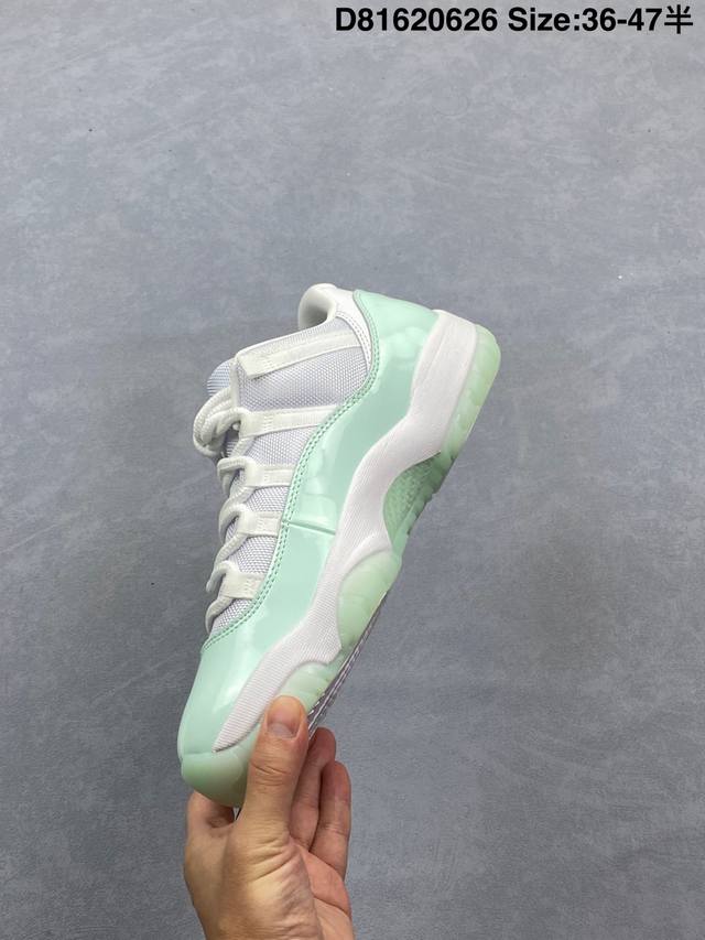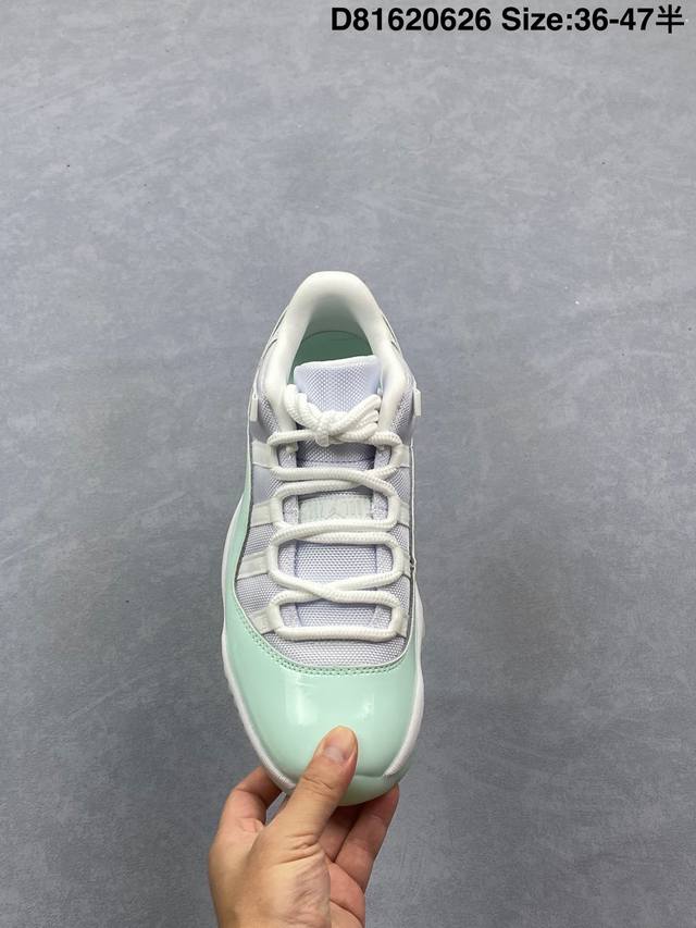 Nike Air Jordan 11 Retro Low Igloo 白薄荷绿 低帮运动文化篮球鞋 原楦原档案数据开模打造 原厂中底拉帮钢印 原厂漆皮 防冻不开裂 头层皮料 原装鞋撑 水晶大底正确色度色泽 原楦原数据刺绣 原厂车缝走线及对位 毫厘不差 飞人Logo采用原数据电脑刺绣 原装正品碳纤维真实碳板 增强抗扭 原内标 原盒标 正确官方原盒 原厂防氧化水晶外底 原厂配套厂全掌Solo气垫