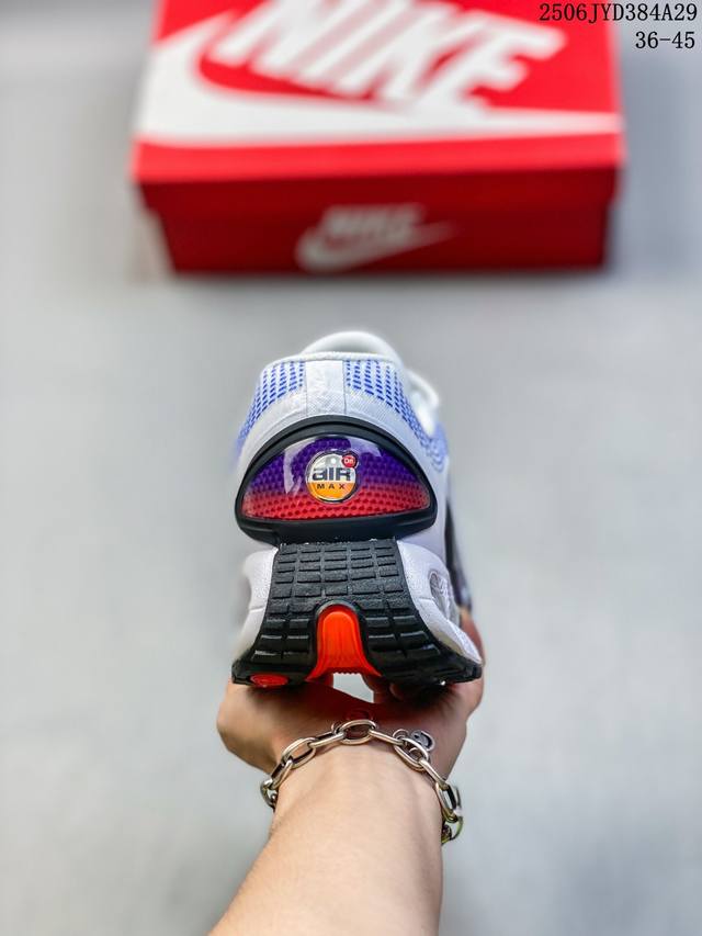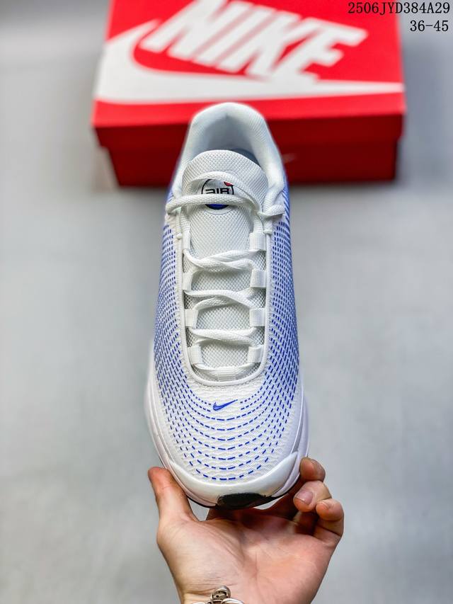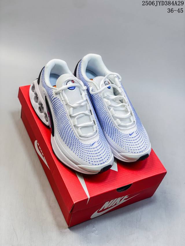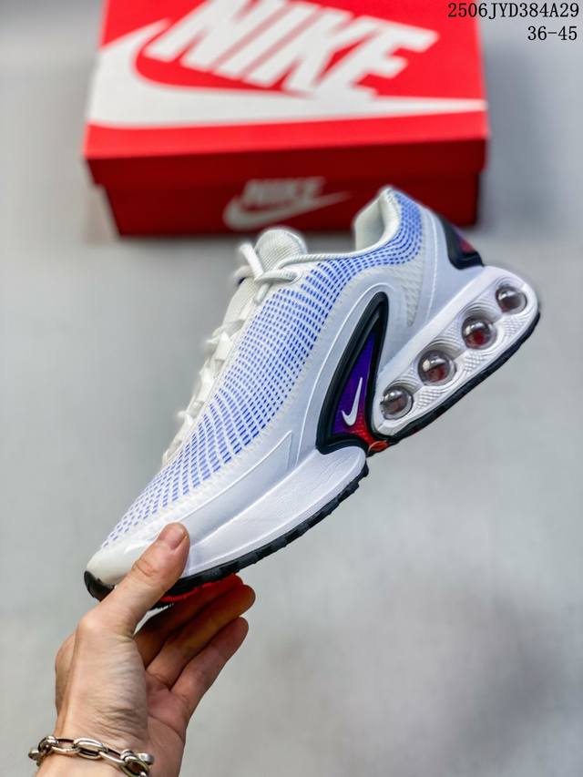 今年 Air Max Day,搭载 “Dynamic Air”技术的 Nike Air Max Dn 首次亮相,四个分区圆形开窗气垫带来极高的辨识度。采用“Dynamic Air”技术加持,不仅具备着充满科技感的外观,更具备着优越的穿着质感。Tpu 拱形稳定片为中足提供结构支撑,搭配后跟 Tpu 贴片起到支撑跟腱的作用。注入式 Phylon 泡绵包裹 Air 气垫单元,适合街头行走的橡胶大底则包裹足跟部位,提供抓地力和耐穿性。