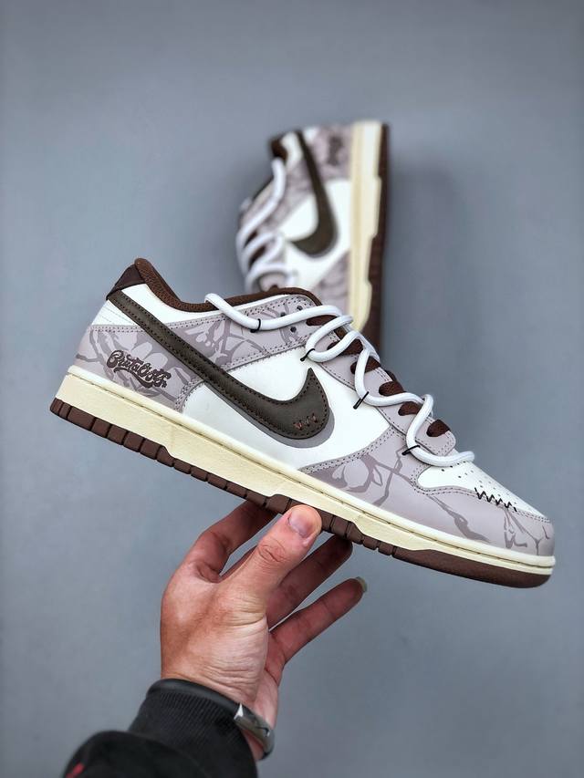 Nike Dunk Low 考拉派对 破碎网格 美式复古 低帮休闲板鞋 Dd1503-124 #配色灵感来源于复古机能风,选择了黑棕色做旧风格为底,解构贴皮点缀,加棕色鞋带,增加视觉效果,实显复古风格。尺码:36 36.5 37.5 38 36.5 39 40 40.5 41 42 42.5 43 44 44.5 45